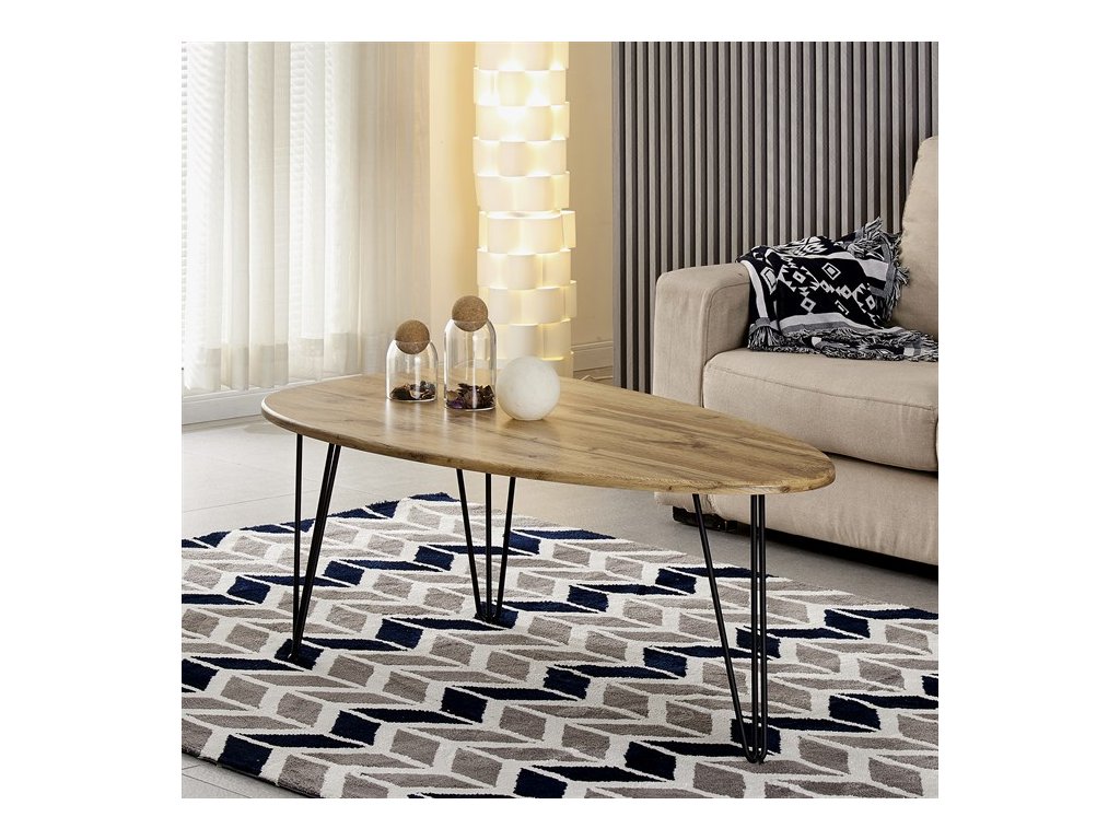 Konferenční stolek SAND představuje spojení elegance, funkčnosti a industriálního designu. Horní deska z MDF v dekoru divokého dubu nebo bílé barvě zaujme atypickým tvarem, který dodává stolku originalitu a stává se dominantním prvkem interiéru. Díky dostatečně prostorné ploše je stolek ideální pro odkládání knih, časopisů, občerstvení či dekorací.