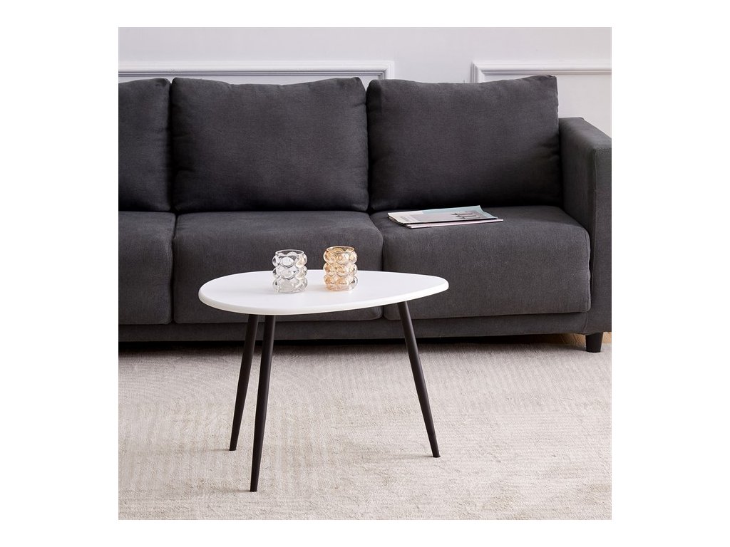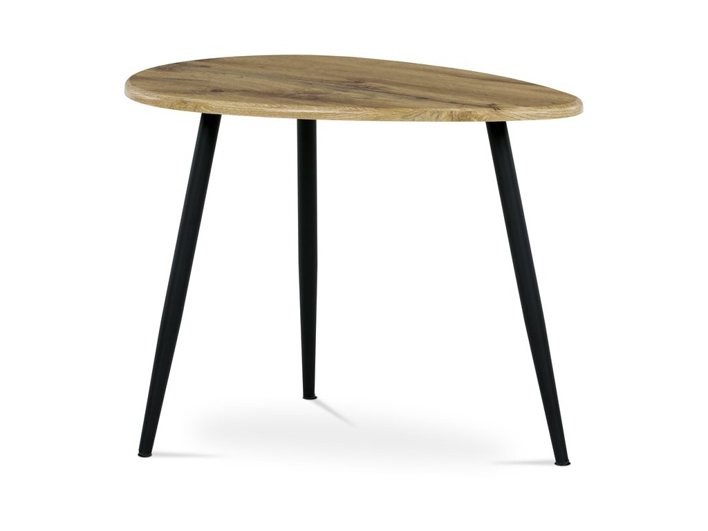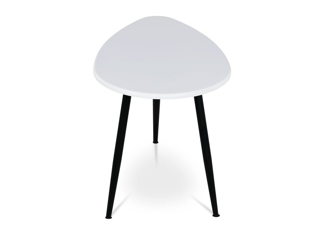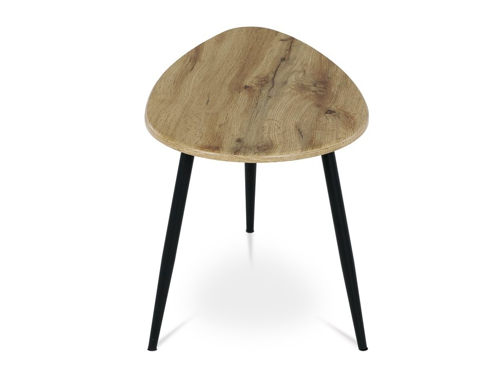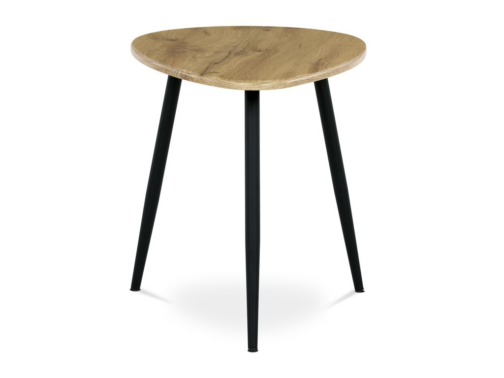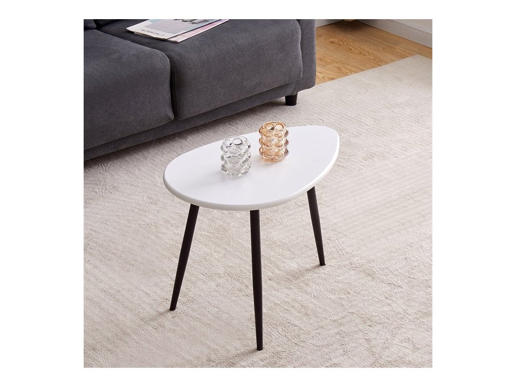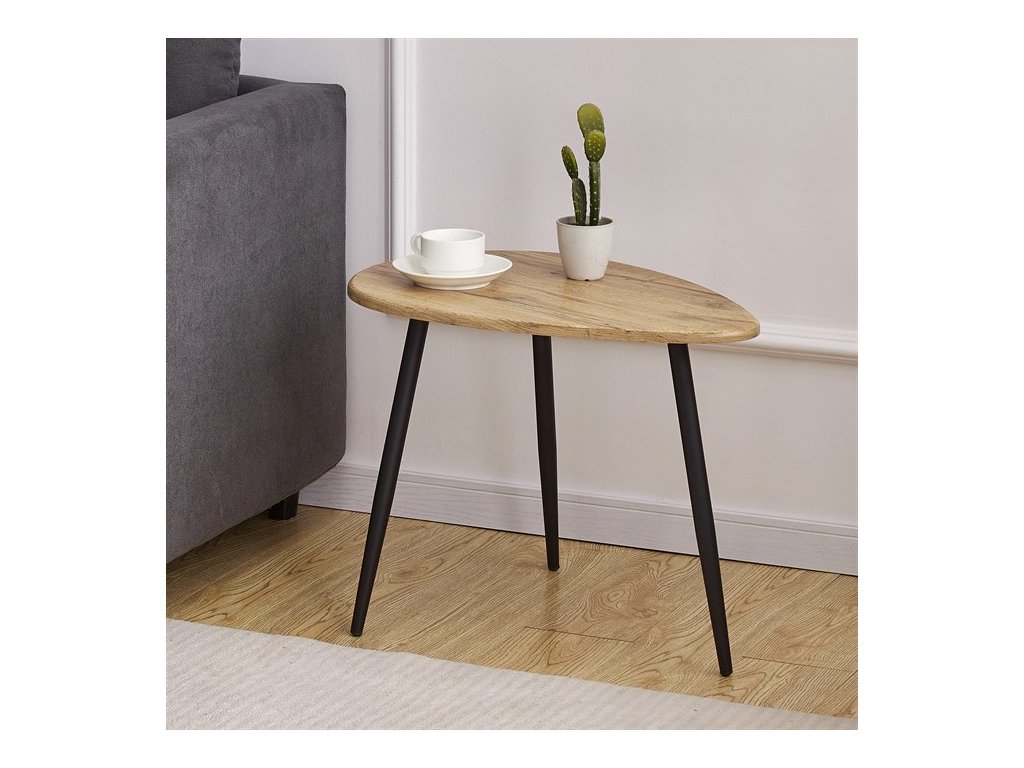 Stolek stojí na třech černých kovových nohách, které zajišťují stabilní oporu a dlouhou životnost. Díky svému kompaktnímu provedení se snadno začlení do obývacího pokoje, pracovny i moderních loftových interiérů, kde se rychle stane stylovým středobodem.