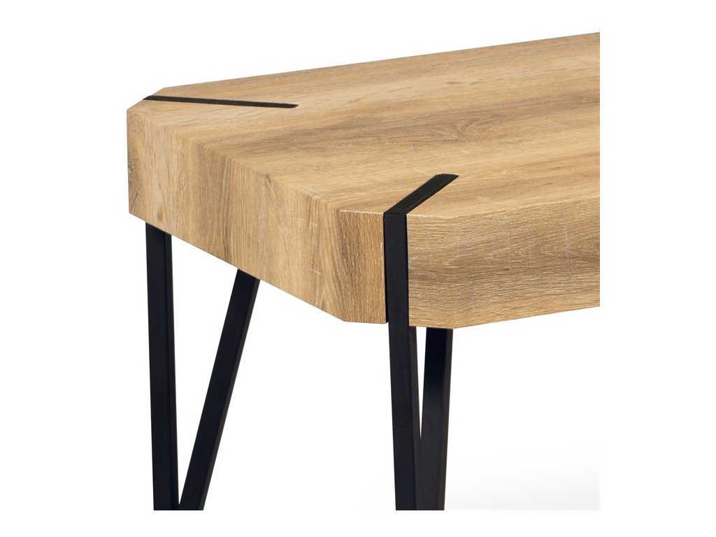 Konferenční stolek TORIL je navržen pro milovníky moderního a industriálního stylu. Deska z MDF s výraznou tloušťkou a přirozenou strukturou dřeva působí elegantně a autenticky. Povrch je hladký, snadno udržovatelný a odolný proti běžnému opotřebení, což zajišťuje dlouhou životnost i při každodenním používání.