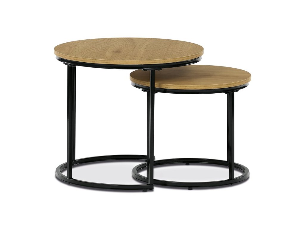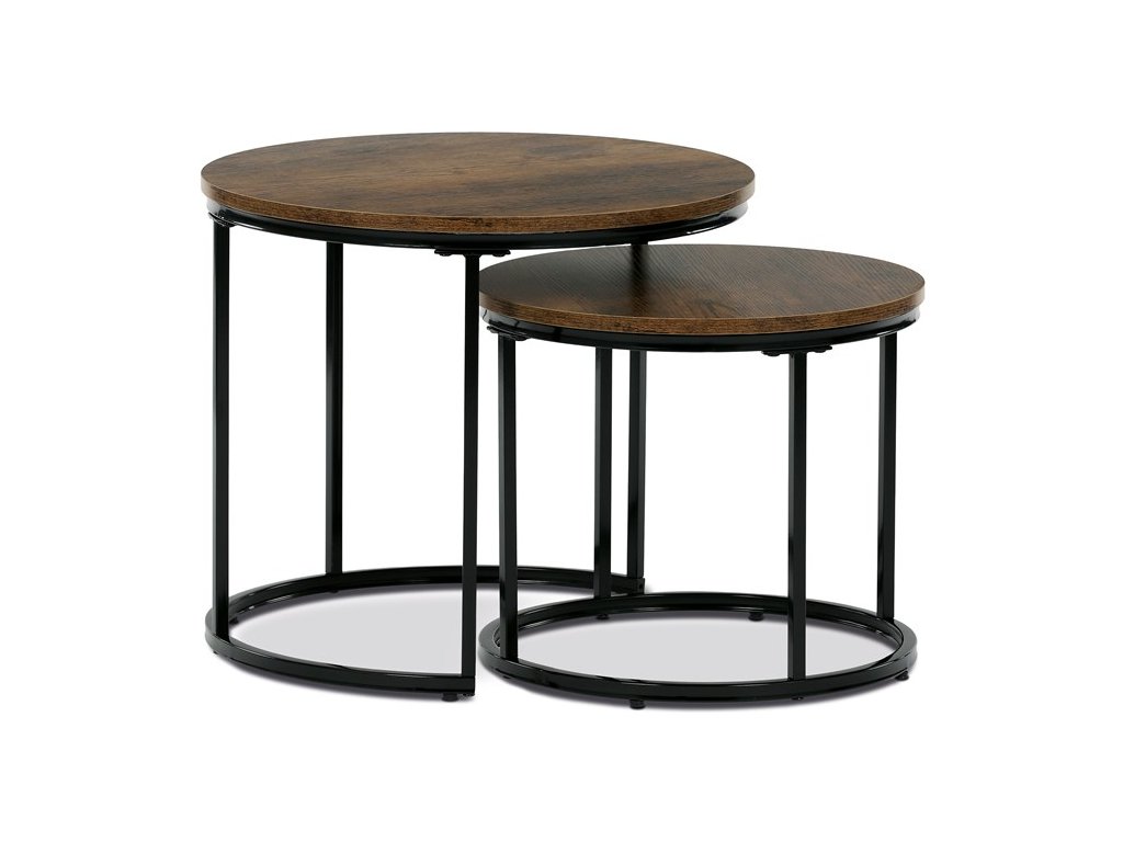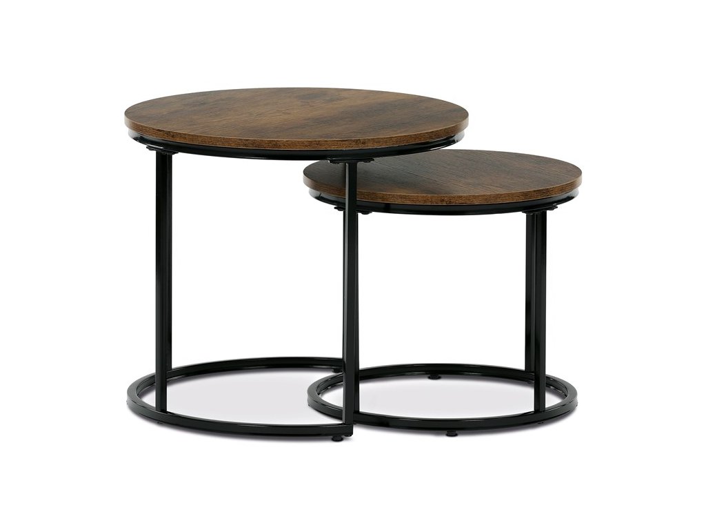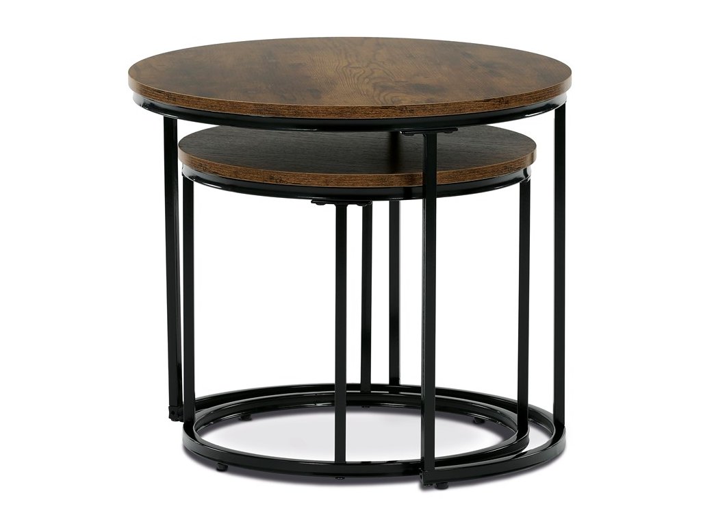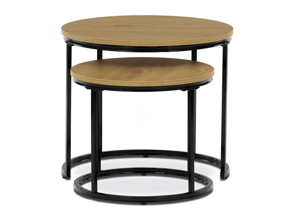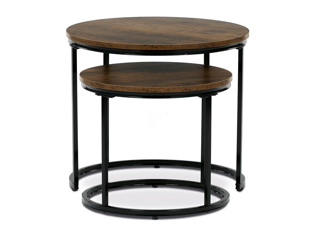 Sada odkládacích stolků VIKEN kombinuje moderní design s maximální praktičností. Kulaté desky doplněné o černé kovové nohy vytvářejí elegantní industriální vzhled, který snadno zapadne do různých interiérů. Díky chytrému řešení lze stoly zasunout pod sebe, což šetří místo a zároveň zvyšuje jejich funkčnost. Jsou perfektní volbou do obývacího pokoje pro odložení nápojů, knih či dekorací.