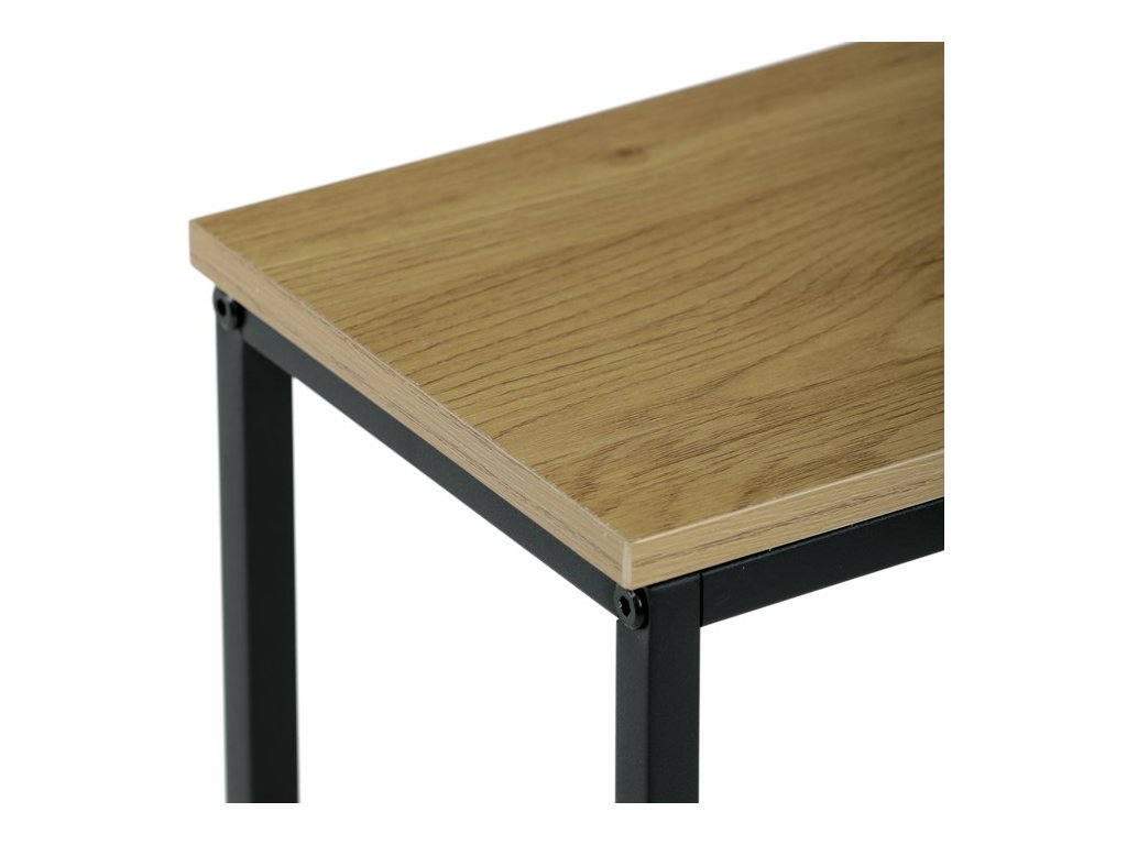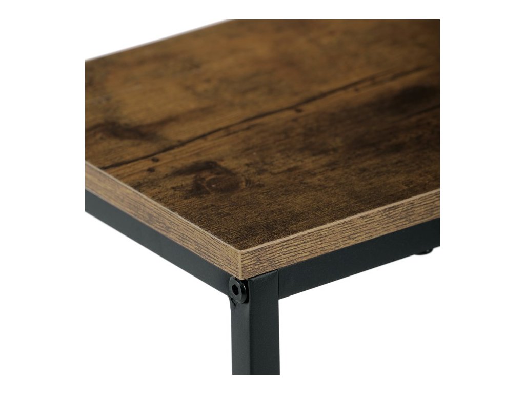 Konzolový stolek FROSTY přináší do vašeho interiéru dokonalé spojení funkčnosti a stylu. Kombinace dekoru divokého dubu nebo dekoru starého dřeva s černým kovovým rámem působí moderně i industriálně a vytváří elegantní kontrast, který zaujme na první pohled. Praktická spodní police poskytuje prostor pro dekorace, knihy či drobné předměty, díky čemuž stolek nejen skvěle vypadá, ale je i maximálně funkční.