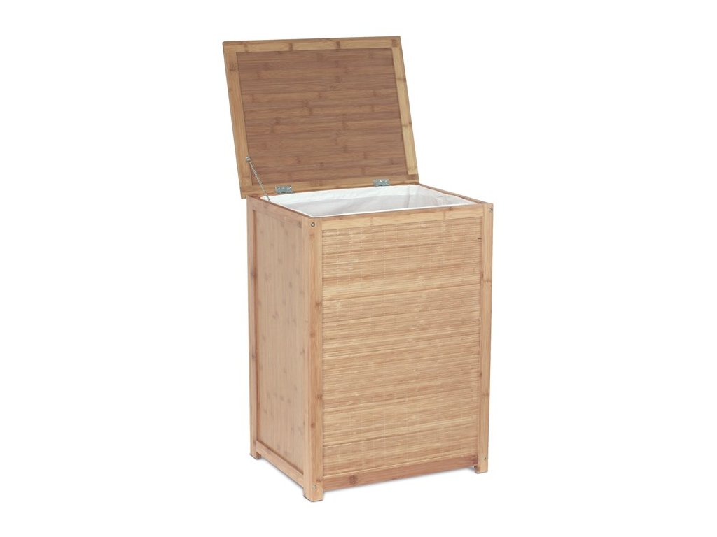 Praktický prádelní koš FREDY je vyrobený z masivního bambusu s přírodní povrchovou úpravou a transparentním lakem, který zajišťuje jeho dlouhou životnost i odolnost. Uvnitř se nachází vyjímatelná textilní vložka v bílé barvě, která usnadňuje manipulaci s prádlem. Koš je vybaven odklápěcím bambusovým víkem, které je zajištěno chromovaným řetízkem proti úplnému otevření.