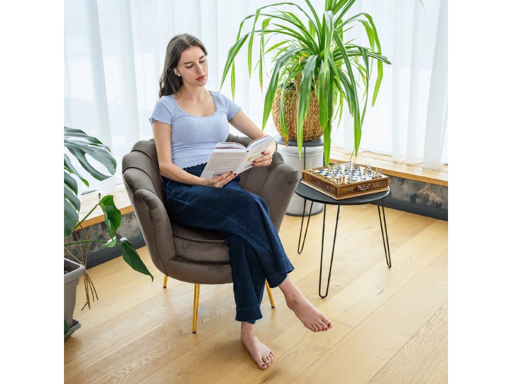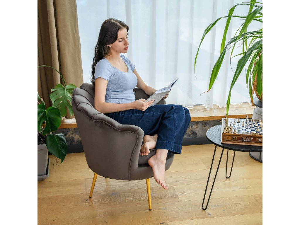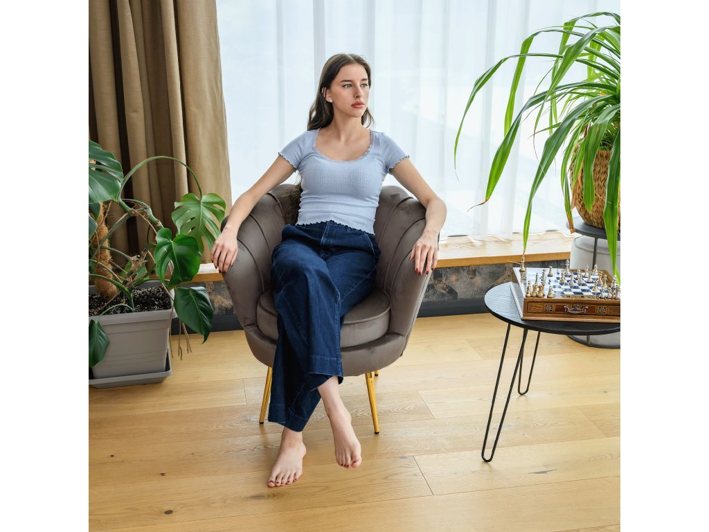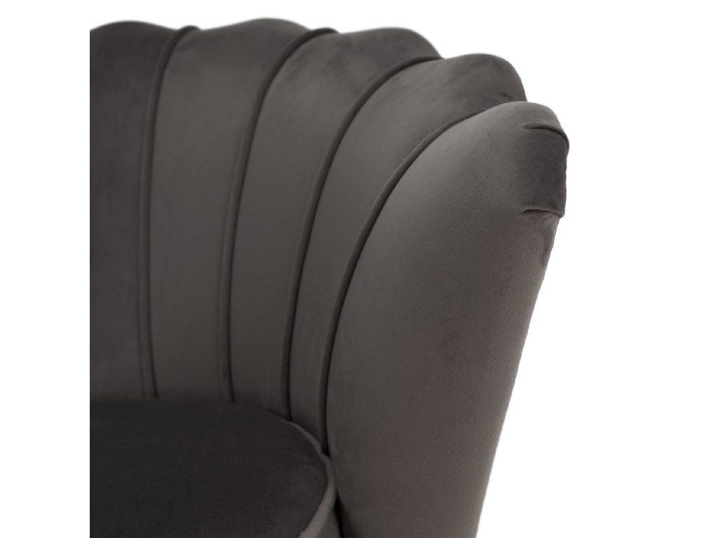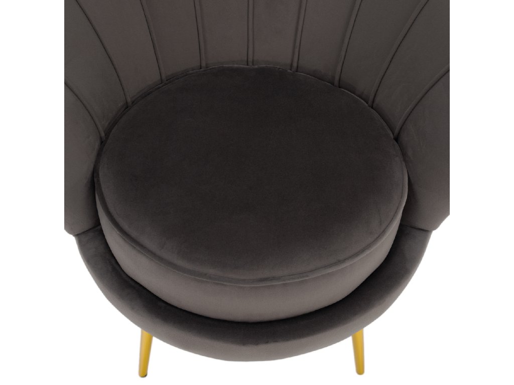 Křeslo ve tvaru mušle působí půvabně a originálně, zatímco dekorativní prošívání opěradla zdůrazňuje jeho jedinečný Art-deco charakter. Kulaté sedadlo s měkkou pěnovou výplní zaručuje vysoký komfort při sezení, a štíhlé kovové nohy křeslu dodávají lehkost a stabilitu. Křeslo PRINCESS se skvěle hodí do obývacího pokoje, ložnice, pracovny i reprezentativních prostor – všude, kde chcete propojit styl, komfort a eleganci.
