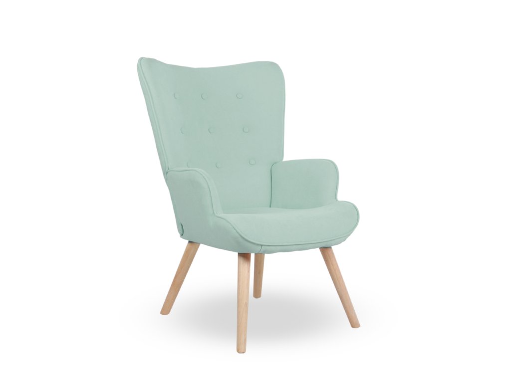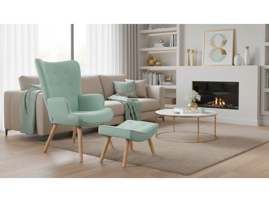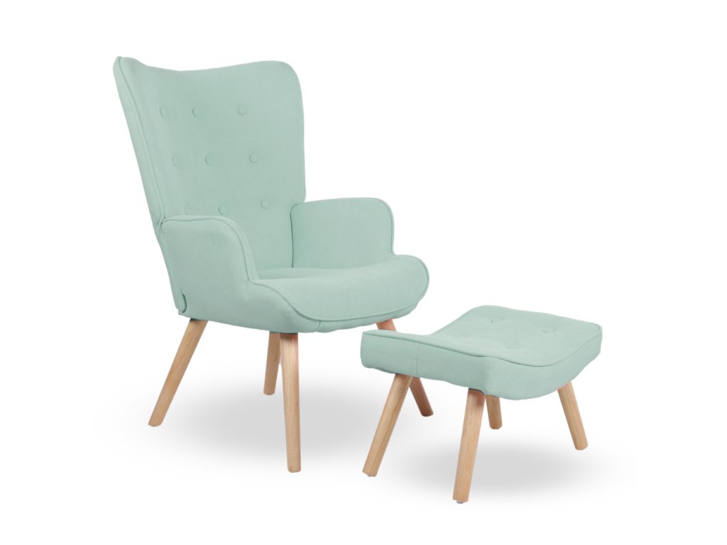 Křeslo ušák ERGODO SIESTA + podnožka - masiv, látka, přírodní / mentolová