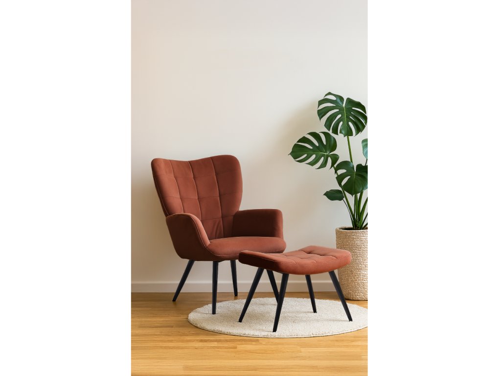 Křeslo ušák LUMEN s podnožkou - Velvet látka, hnědá