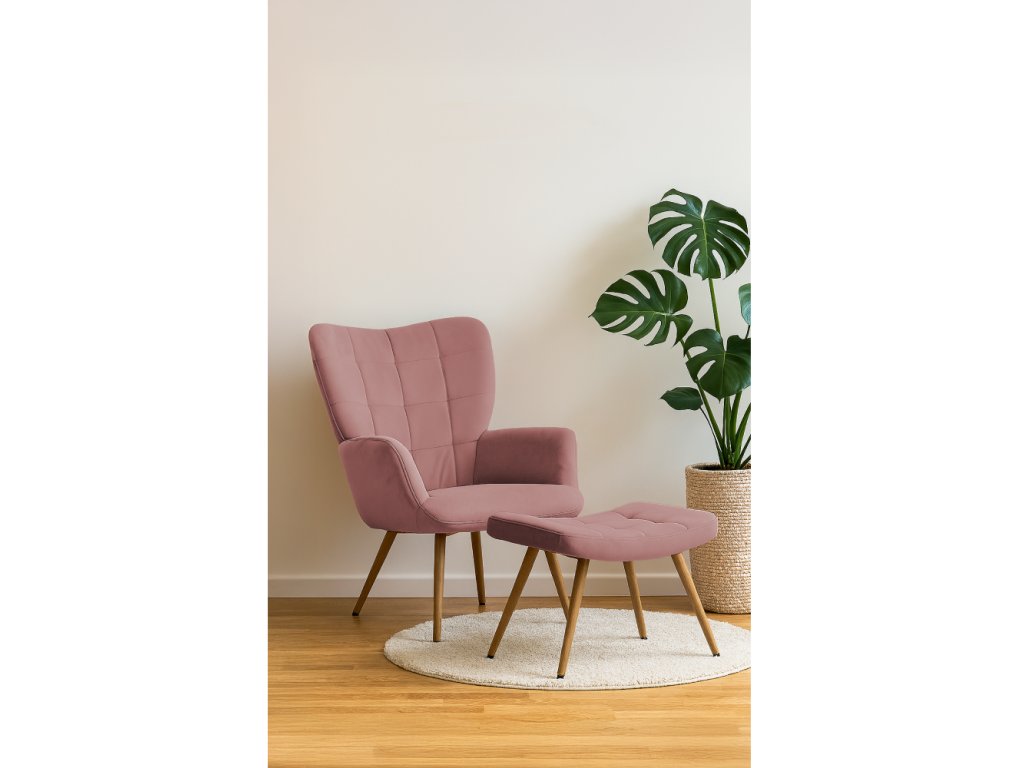 Křeslo ušák LUMEN s podnožkou - Velvet látka, růžová