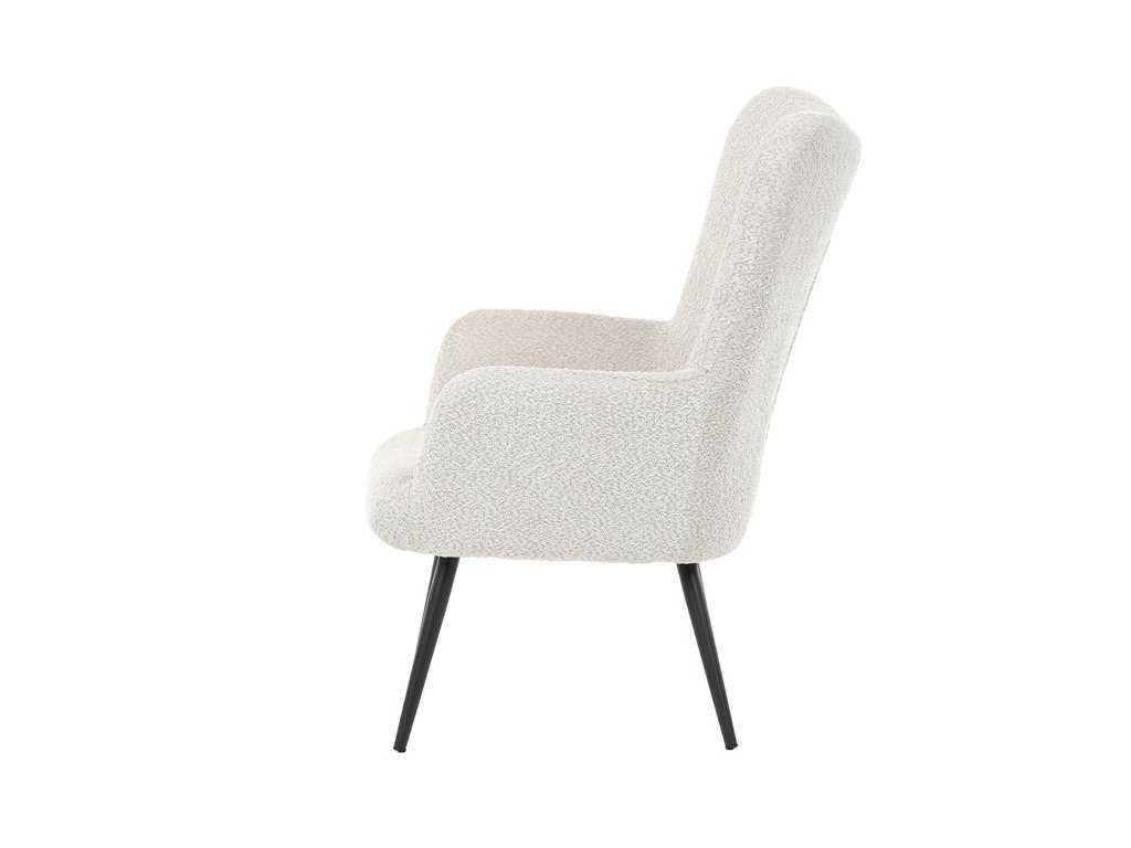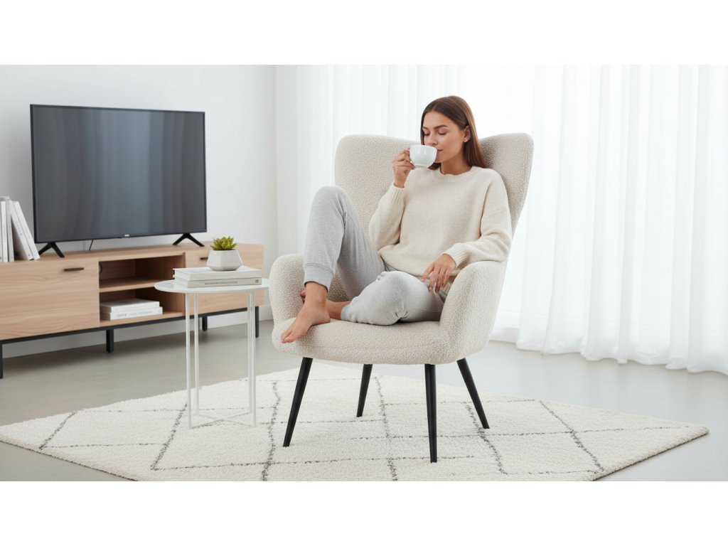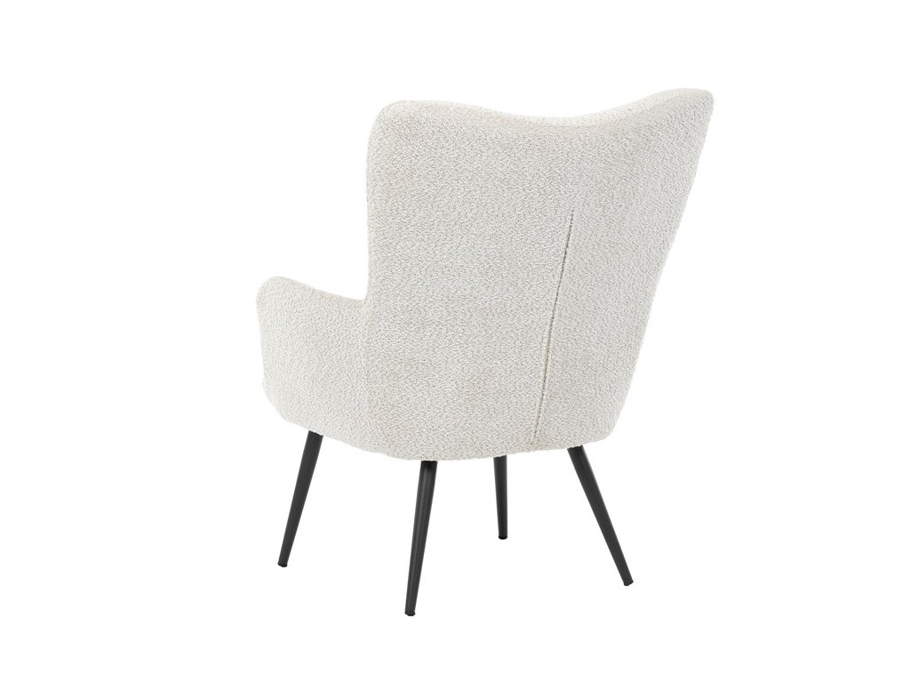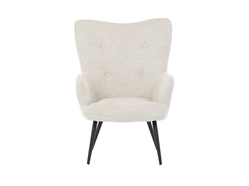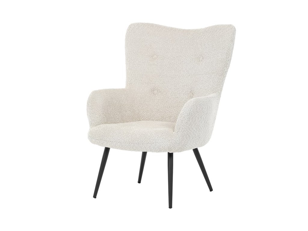 Elegantní křeslo ušák RUF spojuje pohodlí s moderním designem a stane se stylovým prvkem vašeho interiéru. Čalounění z jemné látky Bouclé působí útulně a dodává křeslu na atraktivitě, zatímco ergonomicky tvarované područky a vysoké opěradlo s decentními knoflíky poskytují komfortní podporu při odpočinku. Stabilní kovové nohy v černém provedení dodávají křeslu industriální nádech a zajišťují pevnost i dlouhou životnost. Ideální volba pro relaxaci s knihou, sledování televize nebo příjemné posezení s přáteli.