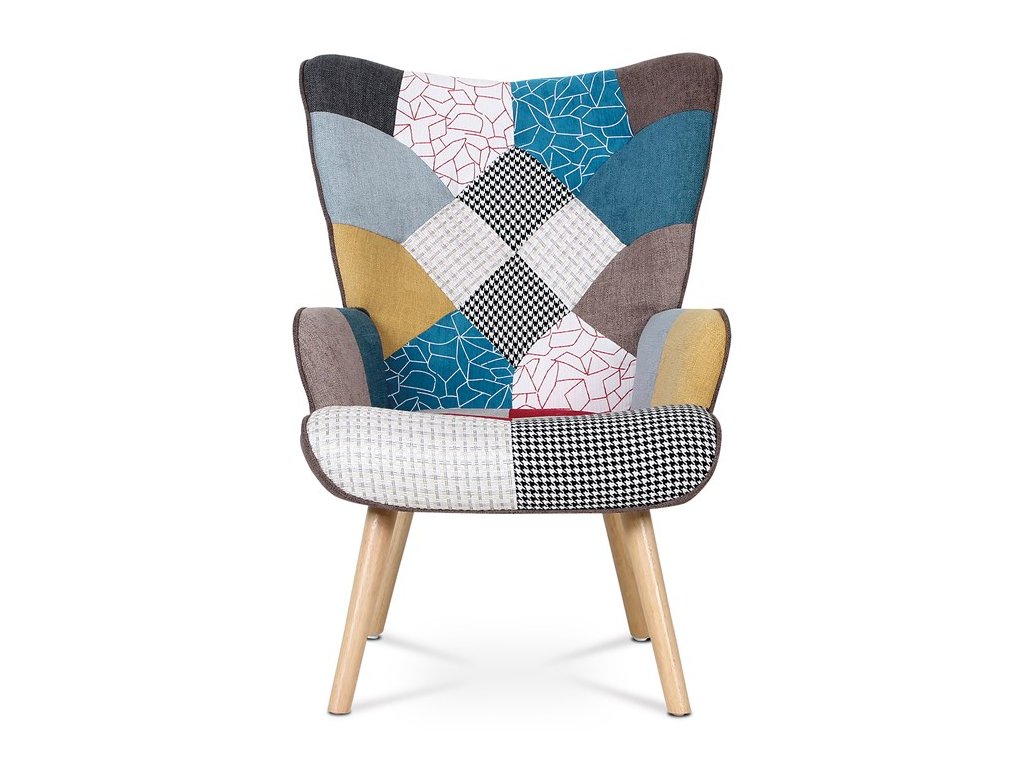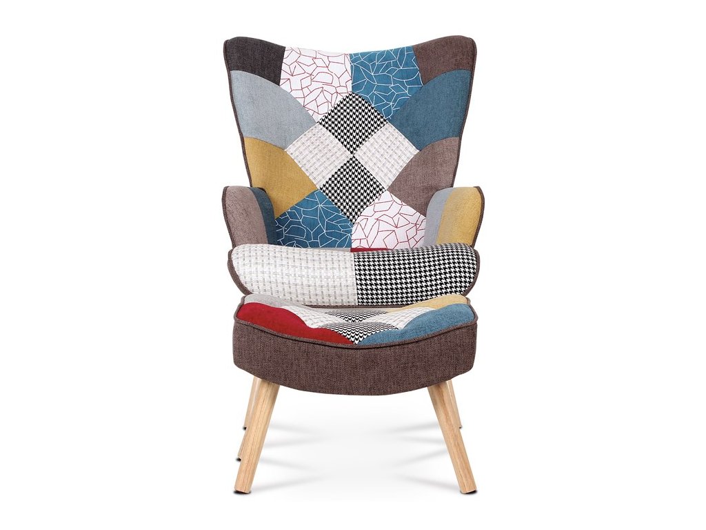 Křeslo TOVA – ušák s podnožkou a originálním patchwork designem