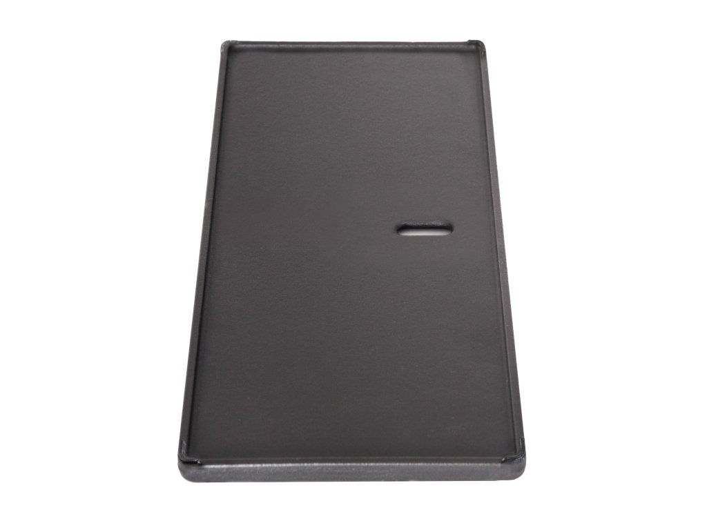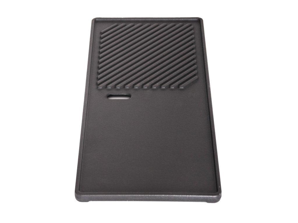 Litina patří mezi nejodolnější materiály, které se pro grilování používají. Je vysoce odolná proti vysokým teplotám a poškrábání. Na každé polovině litinového plátu máte k dispozici jiný druh povrchu. Jedna polovina je hladká a využijete ji především pro grilování nakrájené zeleniny, vajíček a sýrů. Druhá polovina s vroubky je určena pro správné grilování steaků, větších kusů zeleniny a ryb.