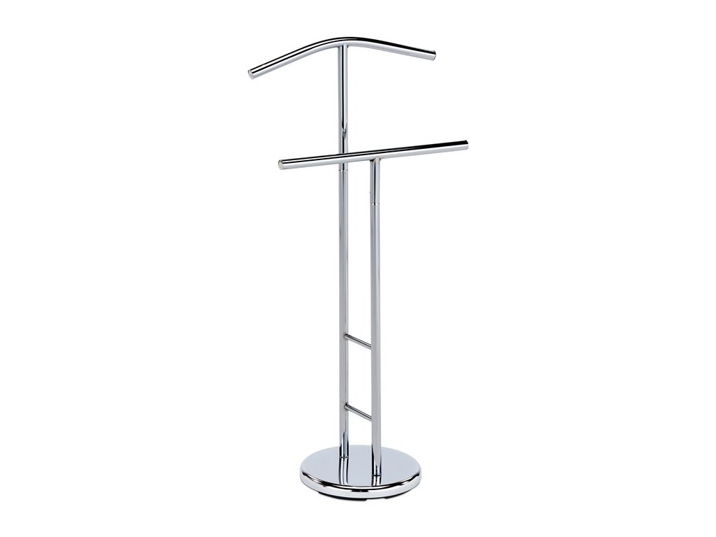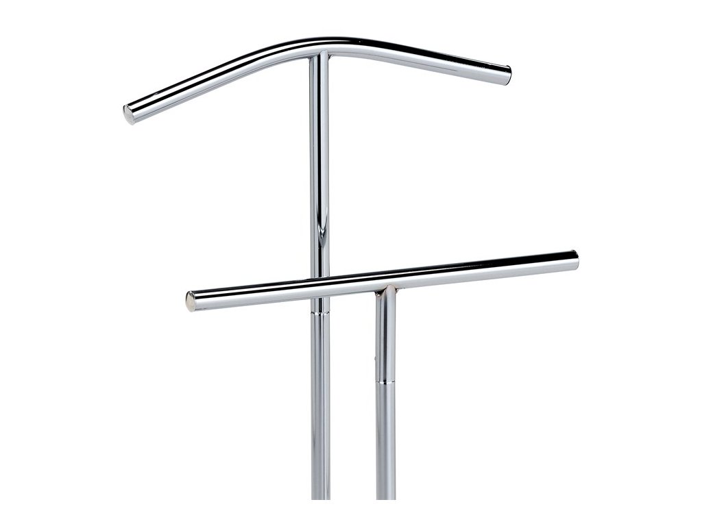Němý sluha ANTIKA v lesklém chromovém provedení je stylovým a funkčním doplňkem pro vaši ložnici či předsíň. Stabilní kovová konstrukce s kulatou základnou zaručuje pevnost a bezpečné používání, zatímco výška 104 cm poskytuje dostatek prostoru pro odložení košil, kalhot či doplňků. Díky nosnosti až 5 kg spolehlivě unese více kusů oblečení najednou. Jeho minimalistický design s čistými liniemi šetří místo a snadno se kombinuje s moderními i klasickými interiéry. ANTIKA vám pomůže udržet pořádek a připravit si outfit na další den.