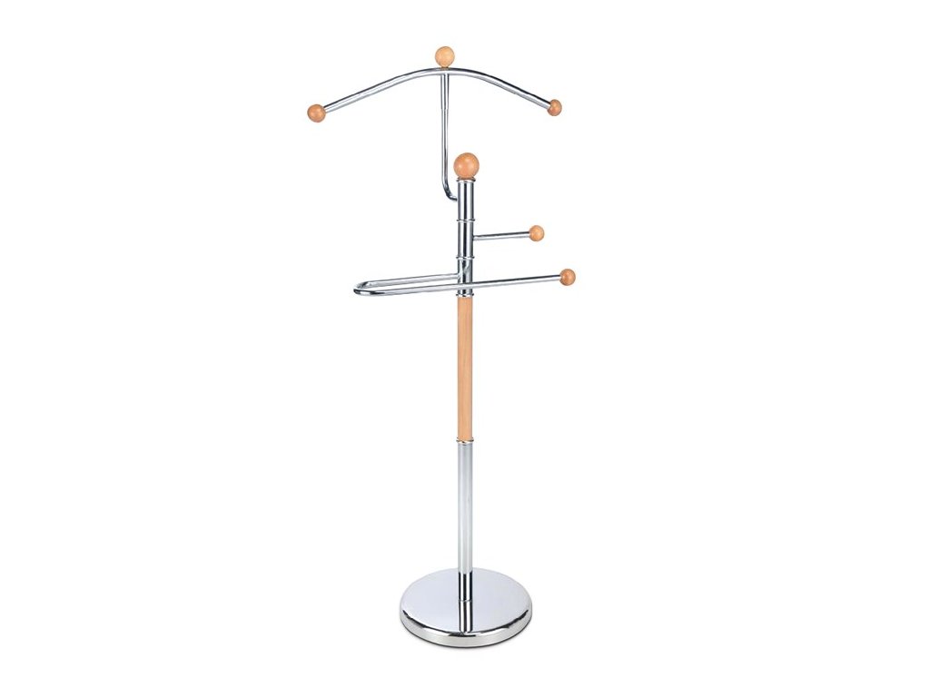 Němý sluha EBONIS je ideálním pomocníkem pro každodenní organizaci oblečení. Kombinace kovových trubek s chromovanou povrchovou úpravou a masivního dřeva v přírodním odstínu vytváří elegantní a nadčasový vzhled, který zapadne do každého interiéru. Díky výšce 112 cm umožňuje pohodlné zavěšení oblečení i doplňků bez rizika pomačkání.