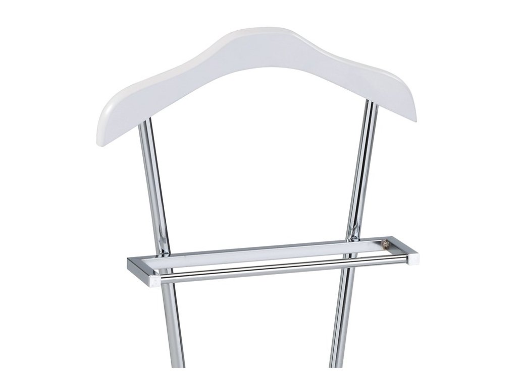 Němý sluha VINTARIA v moderním designu kombinuje kovovou konstrukci s masivním ramenem, což zajišťuje stabilitu i dlouhou životnost. Povrchová úprava v bílém matném laku a chromu působí elegantně a snadno se začlení do jakéhokoliv interiéru. Díky výšce 110 cm nabízí dostatek prostoru pro zavěšení oblečení a doplňků bez pomačkání. S nosností až 6 kg je vhodný pro každodenní použití v ložnici, šatně i předsíni. Díky nízké hmotnosti je navíc snadno přenositelný a flexibilní podle vaší aktuální potřeby.