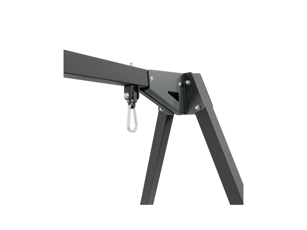 Nabízený ocelový rám představuje odolnou a bezpečnou konstrukci. Profily 60x60x2 mm z vysoce kvalitní oceli zaručují bezpečné používání. Stabilitu rámu navíc zajišťuje výztuha mezi nohama a příčkou v podobě vhodně zakřiveného upevňovacího prvku. Práškově lakovaná ocel navíc zajišťuje vysokou odolnost vůči povětrnostním podmínkám - například dešti, větru, nízkým a vysokým teplotám - a mechanickému poškození včetně poškrábání.