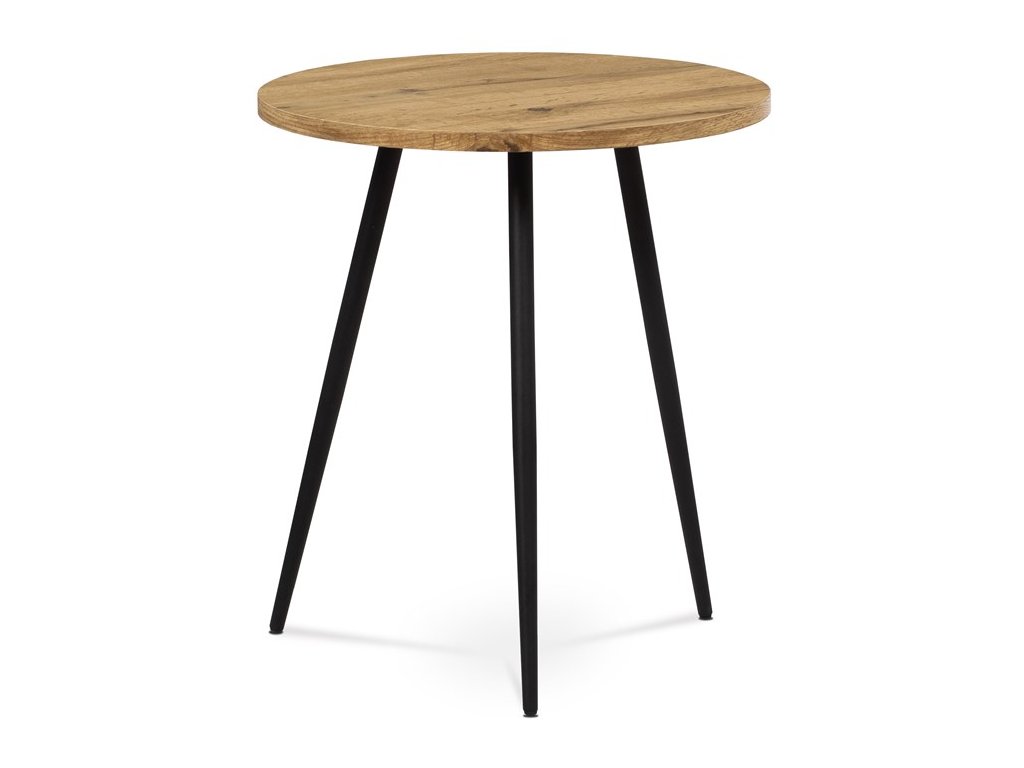 Odkládací stolek MYK přináší harmonické spojení přírodního dekoru divokého dubu a pevné kovové konstrukce. Kulatá deska z MDF vyniká autentickou strukturou dřeva, která dodává stolku jedinečný charakter a podtrhuje jeho nadčasový vzhled. Stabilní černé kovové nohy zajišťují pevnost a dlouhou životnost, díky čemuž se stolek stane spolehlivým doplňkem vašeho interiéru.