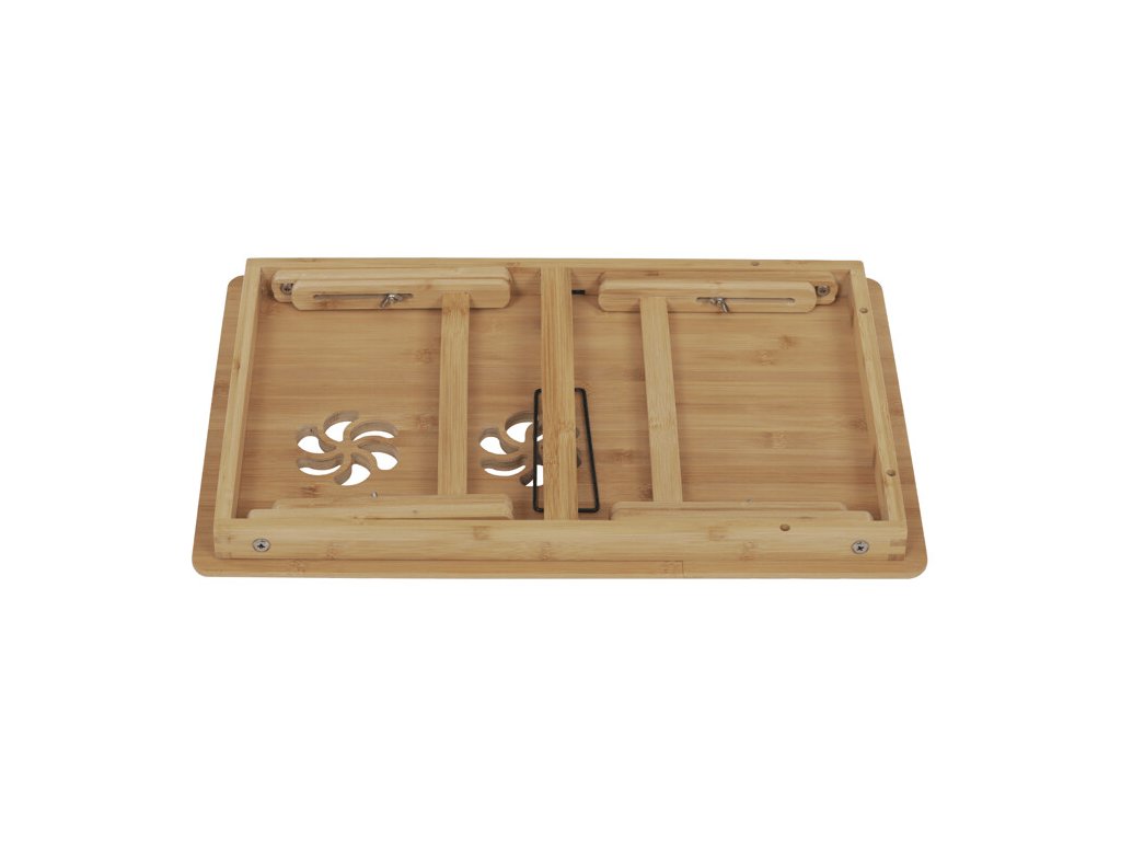 Hlavní pracovní plocha je nastavitelná do několika úhlů, takže si snadno zvolíte ideální pozici pro psaní, sledování videí či práci na notebooku. Větrací otvory v desce pomáhají odvádět teplo, takže zařízení zůstává v bezpečí i při delším provozu. Vedlejší rovná plocha je ideální pro myš, telefon, poznámky nebo hrnek s čajem, takže máte vše potřebné vždy po ruce.
