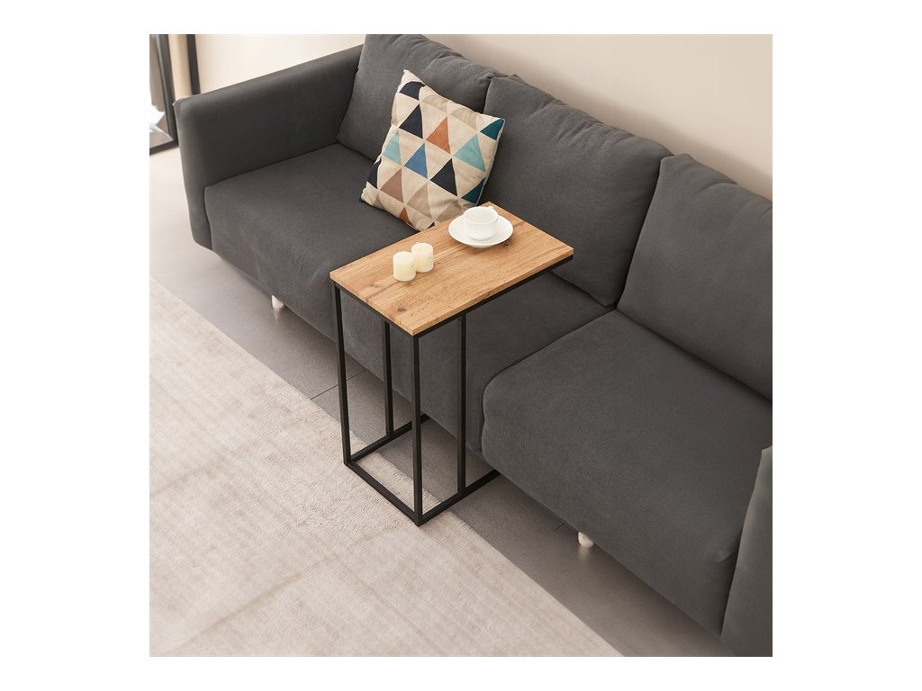 Odkládací stůl TOR spojuje moderní industriální design s praktickou funkčností. Deska z MDF v dekoru dubu v sytě hnědém odstínu vytváří elegantní kontrast s robustními černými kovovými nohami. Díky svému kompaktnímu provedení je stolek vhodný do domácností i kanceláří, kde se stane nejen stylovým prvkem, ale i užitečným pomocníkem.