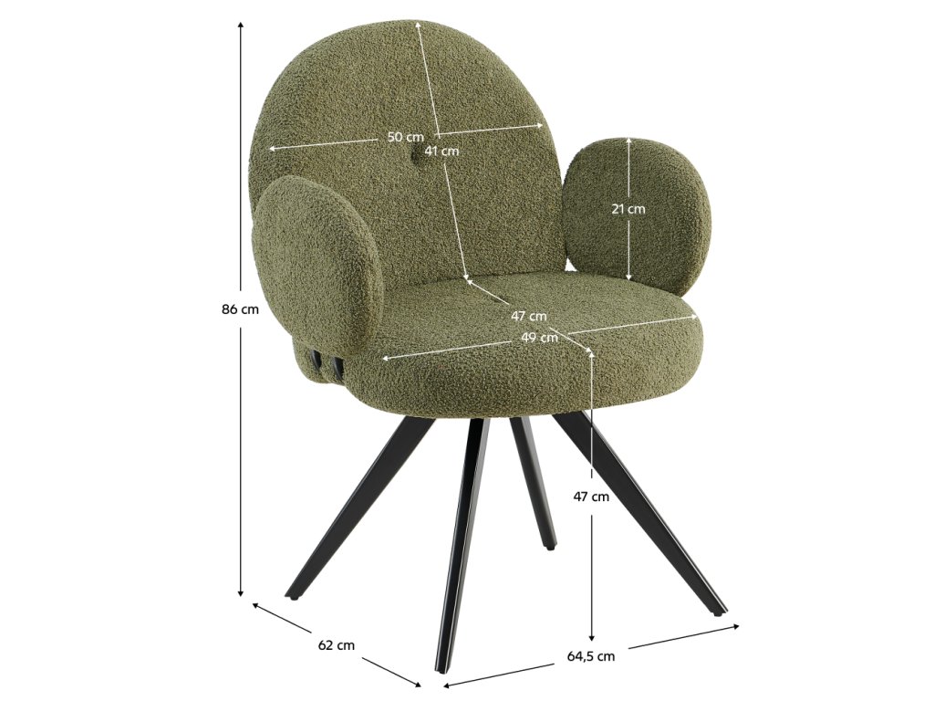 Dopřejte si pohodlí a styl s otočnou židlí FINA, která propojuje moderní design, praktičnost a nadčasovou eleganci. Čalounění z měkké Bouclé látky v zeleném odstínu vnese do interiéru svěží nádech přírody, klidu a harmonie. Jemná struktura látky je příjemná na dotek a působí útulně i luxusně zároveň.