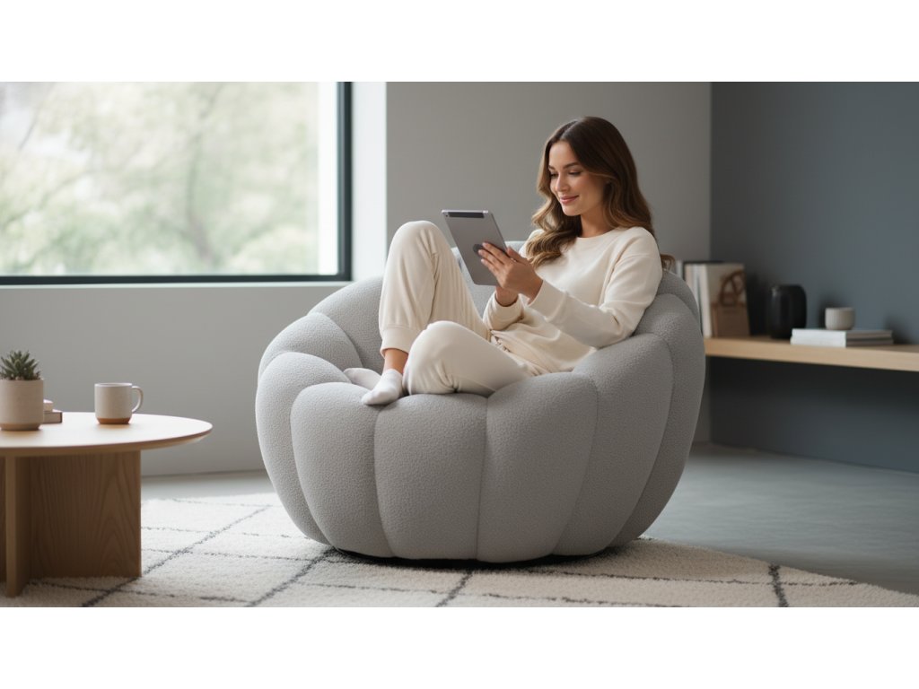 - Čalounění z měkké látky Bouclé pro luxusní vzhled a komfort