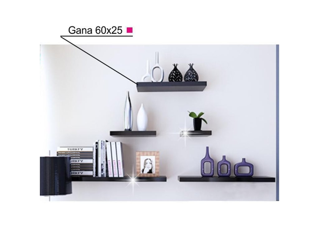 Police, která se stává součástí stěny díky skrytému nástěnnému kování.Materiál: MDF