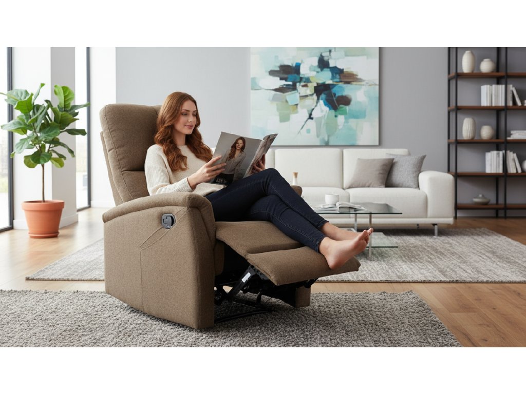 Polohovací TV křeslo AKI je navrženo tak, aby vám poskytlo maximální komfort při sledování televize, čtení nebo odpočinku. Díky manuálnímu ovládání pomocí postranní páky si snadno nastavíte sklon opěradla i podnožky přesně podle svých potřeb.