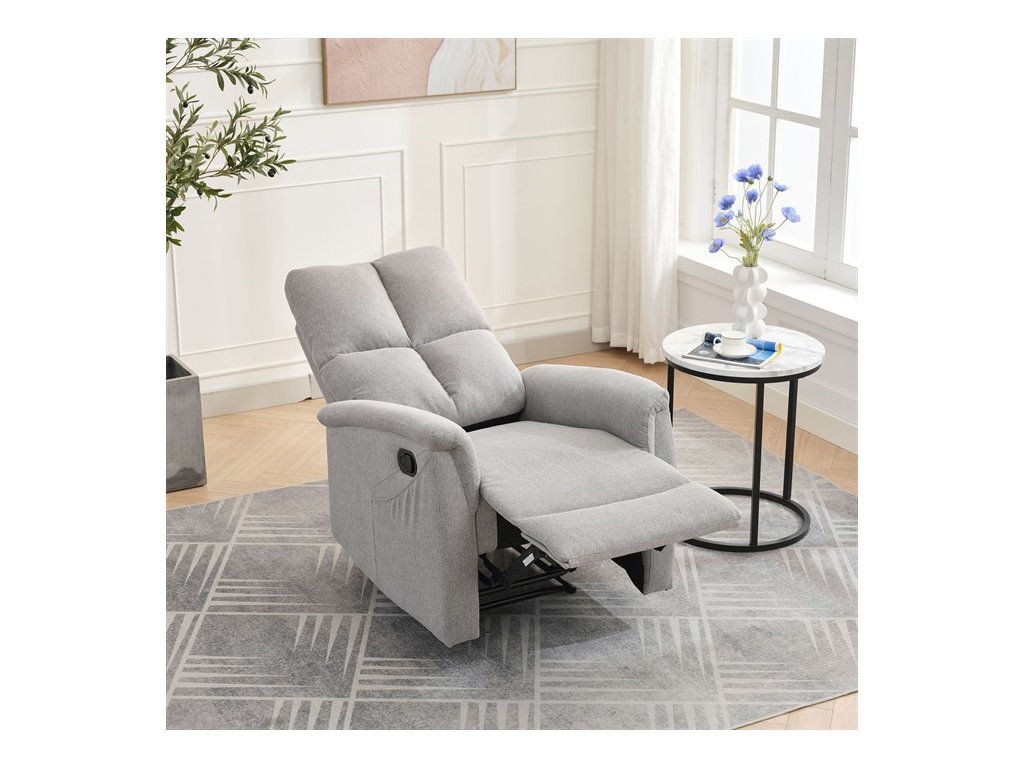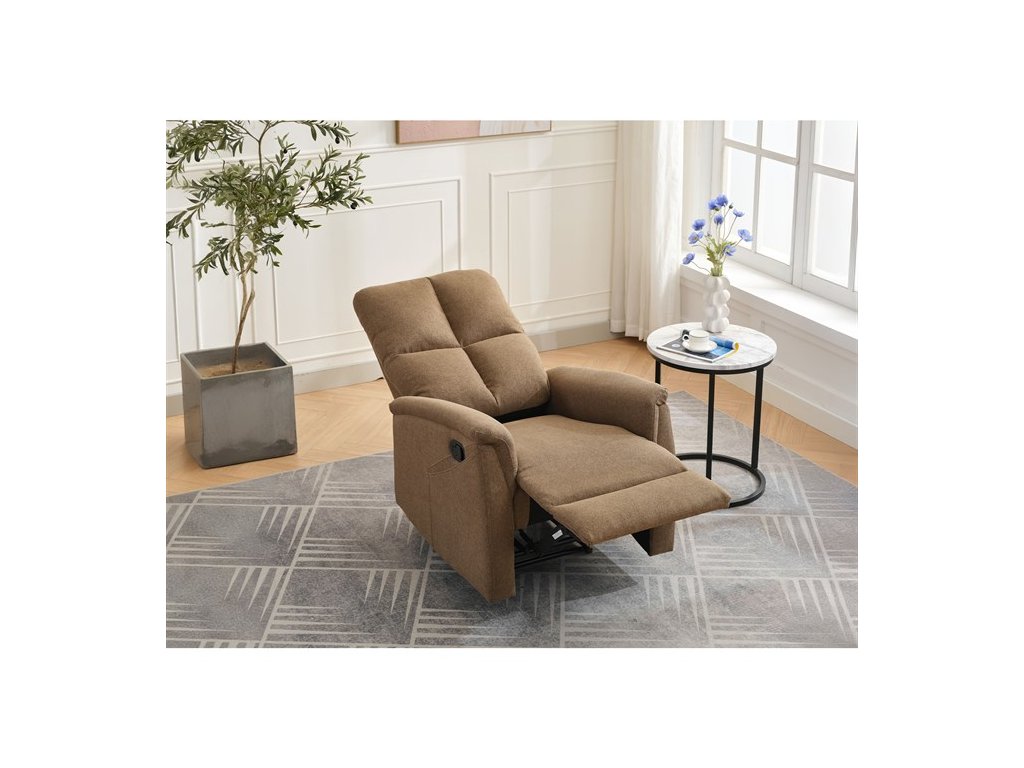 Polohovací TV křeslo AKI je navrženo tak, aby vám poskytlo maximální komfort při sledování televize, čtení nebo odpočinku. Díky manuálnímu ovládání pomocí postranní páky si snadno nastavíte sklon opěradla i podnožky přesně podle svých potřeb.