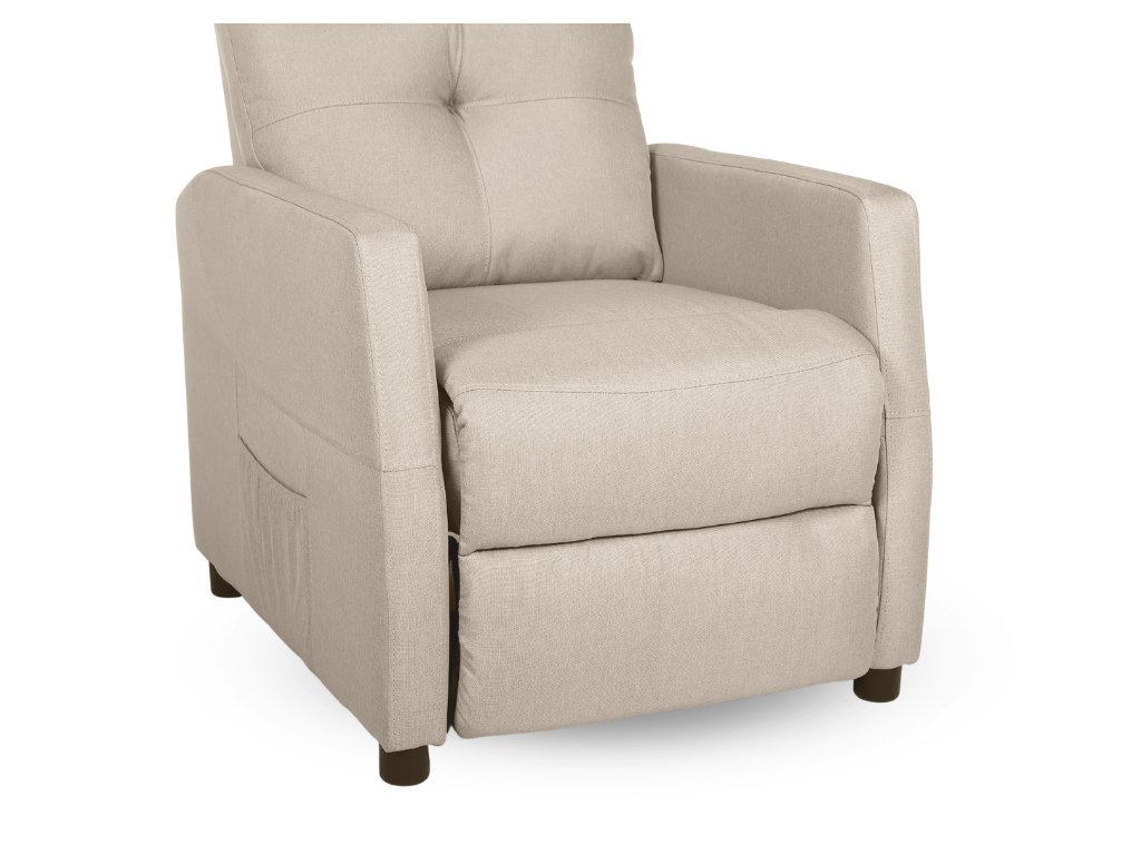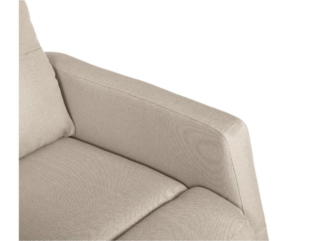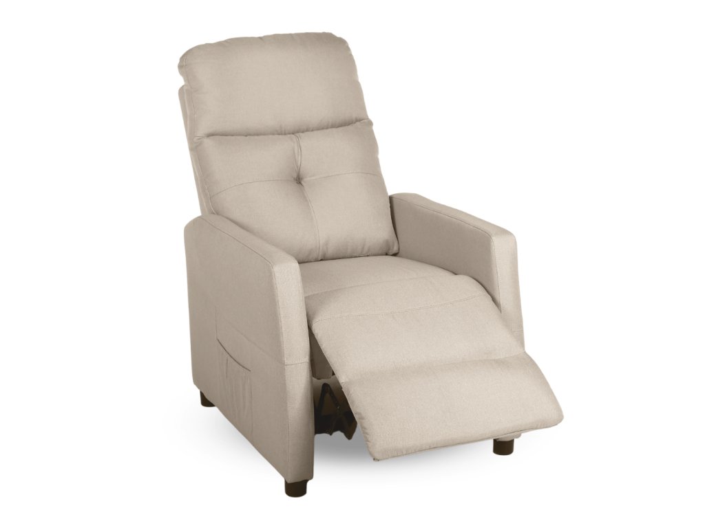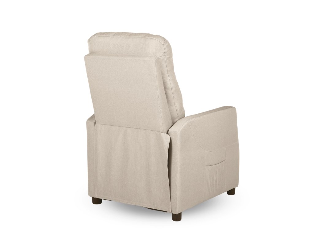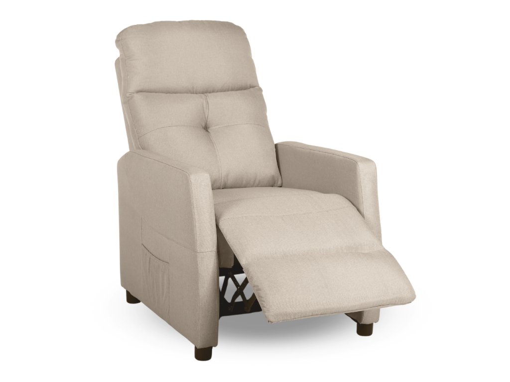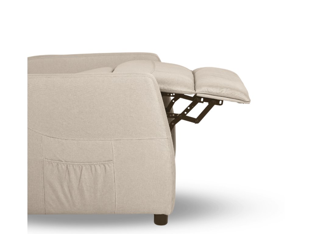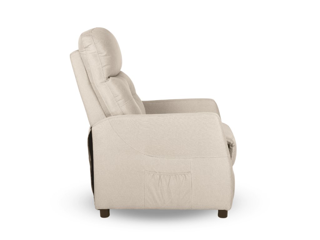 Měkké polstrování z pěny a pružin poskytuje oporu a komfort i při delším sezení. Potahová látka je příjemná na dotek, odolná vůči opotřebení a snadno se čistí, takže křeslo si uchová svůj vzhled po mnoho let. Po stranách nechybí praktické kapsy, kam si můžete odložit ovladač, mobil nebo oblíbenou knihu. Stabilitu zajišťuje pevná konstrukce doplněná o krytky proti poškrábání podlahy.