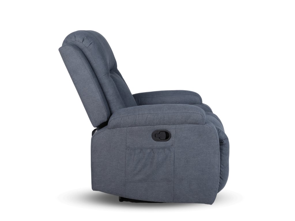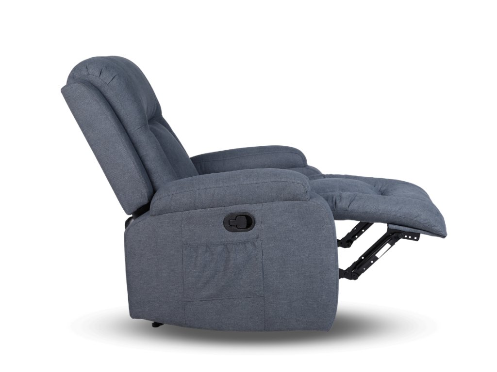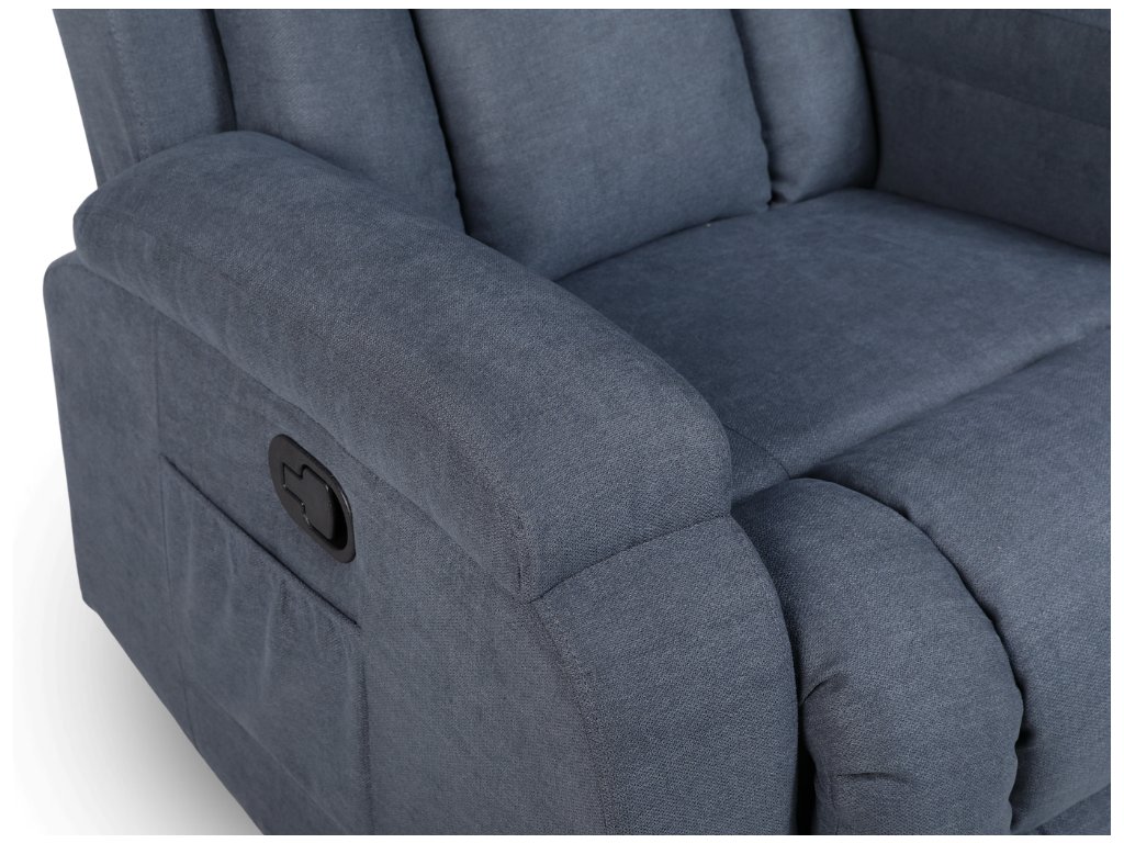 Masivní polstrování z kvalitní pěny a pružin je doplněno o čalounění z příjemné hladké látky, které je nejen odolné, ale i elegantní na pohled. Členité dekorativní prošívání dodává křeslu sofistikovaný vzhled a podtrhuje jeho moderní charakter. Vnitřní konstrukce kombinuje pevné dřevo s kovovým rámem, což zajišťuje dlouhou životnost a vysokou stabilitu. Po stranách křesla se nachází praktická kapsa, kam můžete odložit ovladač, časopis nebo mobilní telefon.