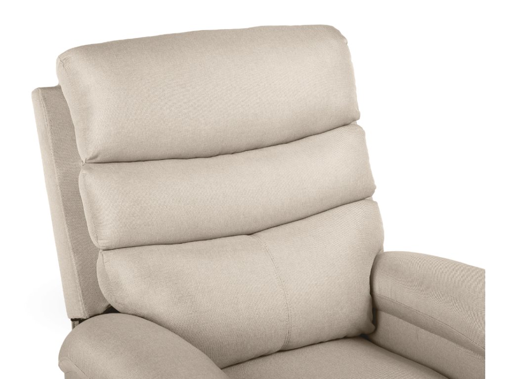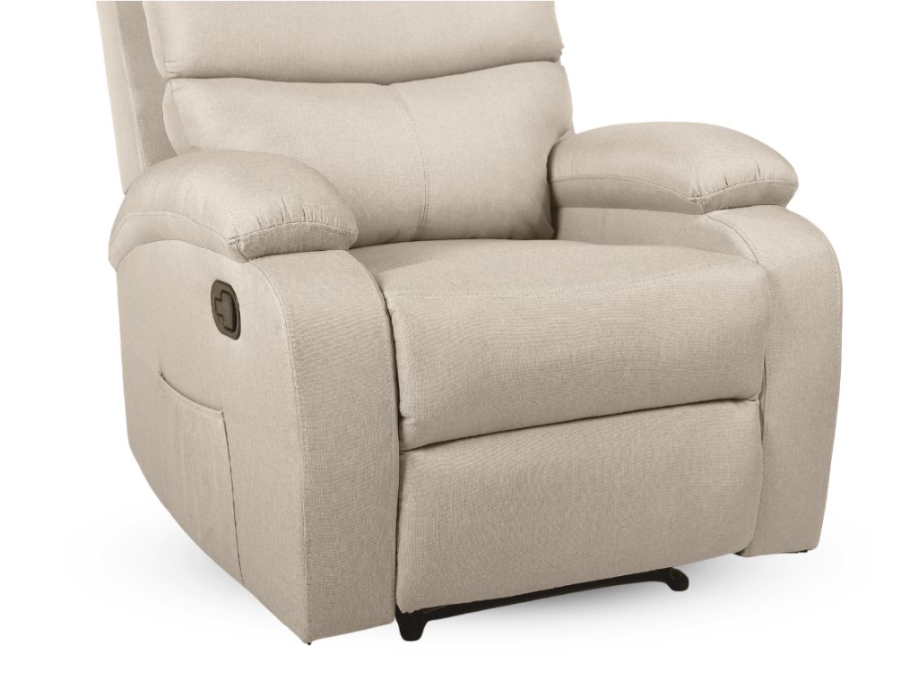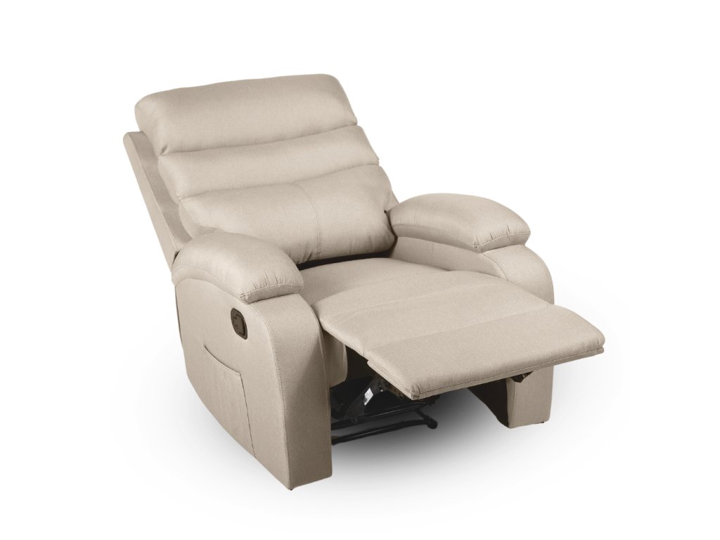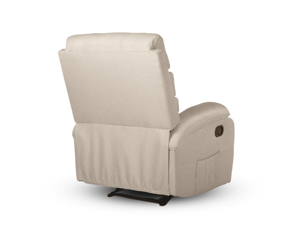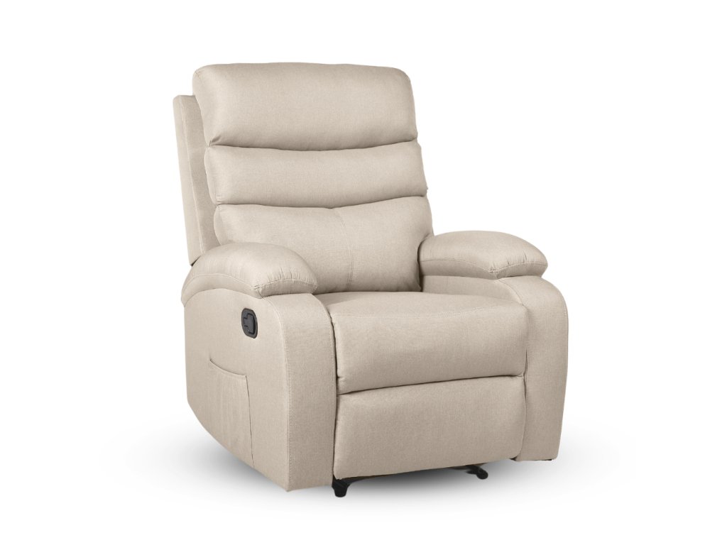 Díky propracované asynchronní polohovací mechanice lze opěrku zad i podnožku nastavit samostatně, takže si snadno najdete ideální polohu pro relaxaci. Bohaté polstrování z měkké pěny poskytuje maximální pohodlí, zatímco kvalitní látkový potah v béžovém odstínu je příjemný na dotek a odolný vůči každodennímu používání. Stabilní konstrukce z kovu a dřeva zaručuje pevnost, zatímco praktická kapsa na boku nabízí místo pro ovladač nebo knihu.