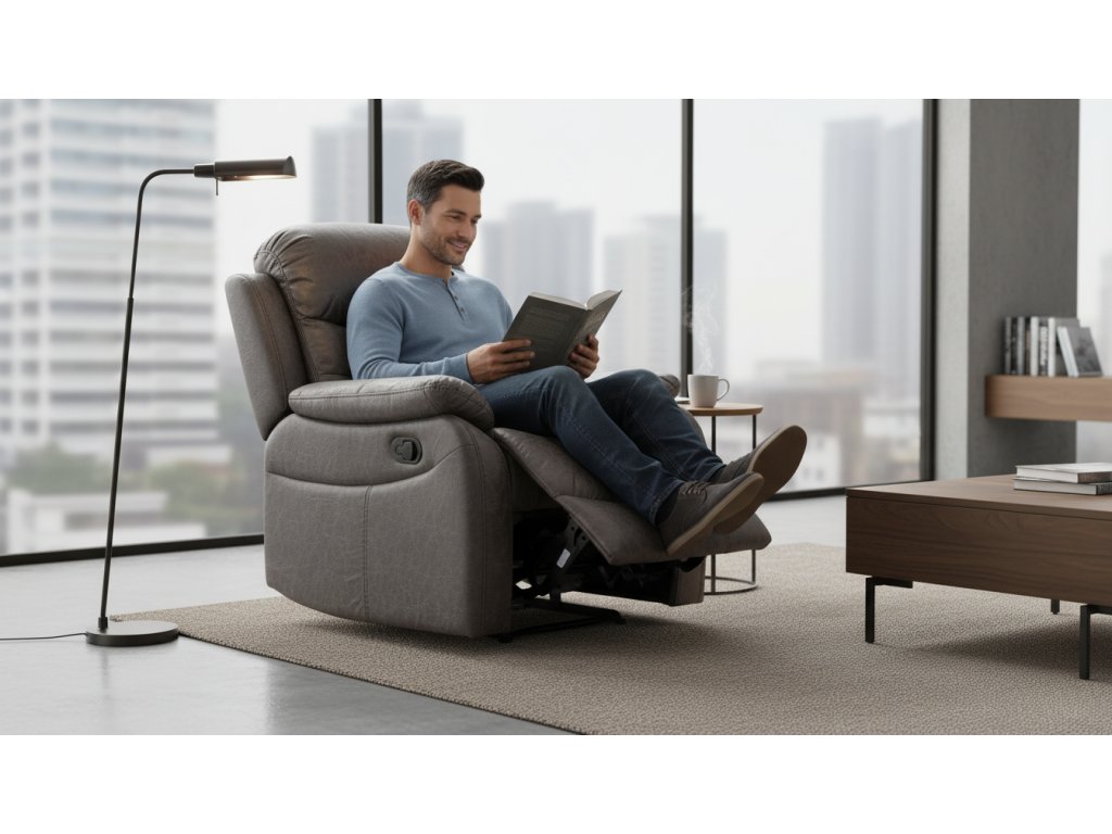 TV křeslo FENRIR přináší kombinaci pohodlí, funkčnosti a elegantního vintage designu. Potah z kvalitní látky s jemnou texturou a výrazným prošitím dodává křeslu jedinečný charakter, který zapadne do moderních i klasických interiérů. Manuální mechanismus umožňuje snadné polohování opěradla a podnožky, takže si vždy nastavíte ideální pozici pro sledování televize, čtení nebo odpočinek.