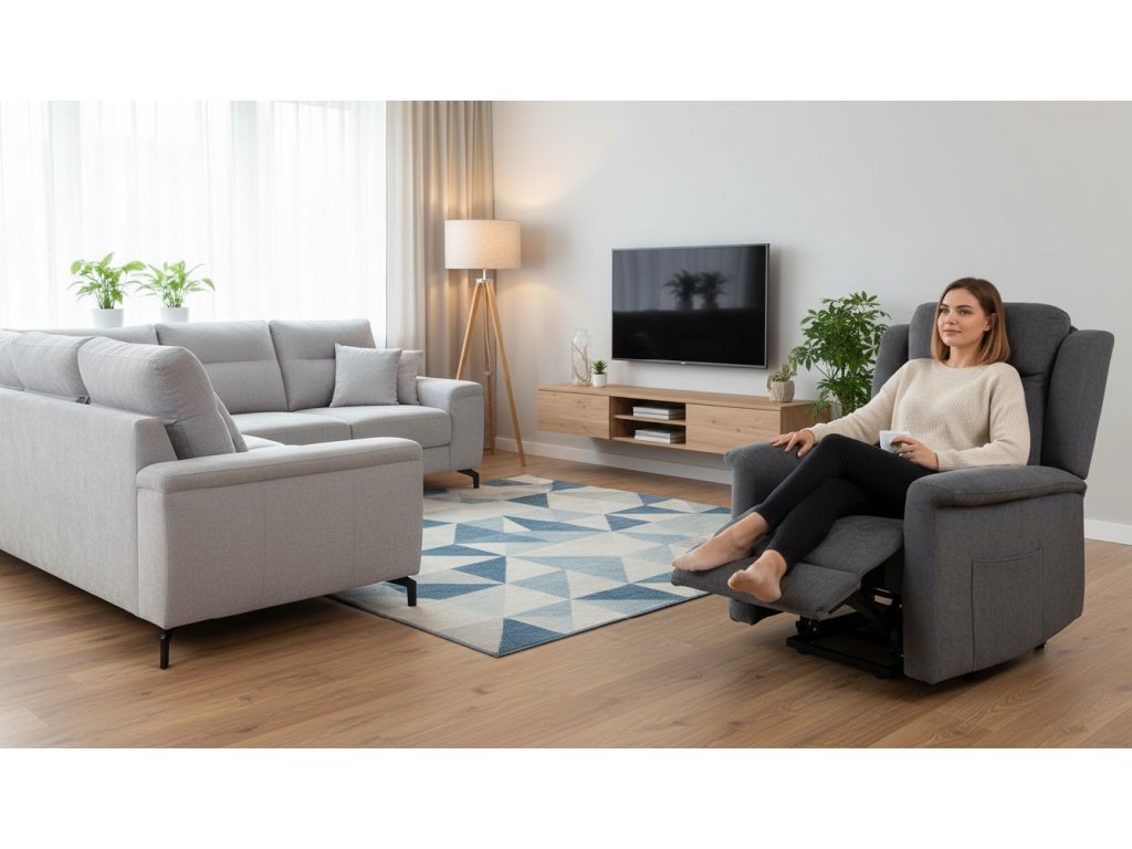 Díky dvěma samostatným motorům lze nezávisle ovládat opěradlo i podnožku – snadno si tak nastavíte přesně takovou polohu, jaká vám vyhovuje pro čtení, sledování televize nebo krátký odpočinek. Výklopná funkce pak pomáhá při vstávání, což ocení nejen senioři, ale i lidé po operacích nebo s omezenou pohyblivostí. Masivní konstrukce, polstrované područky a ergonomicky tvarované sedadlo zajistí dokonalou oporu těla a dlouhodobé pohodlí.