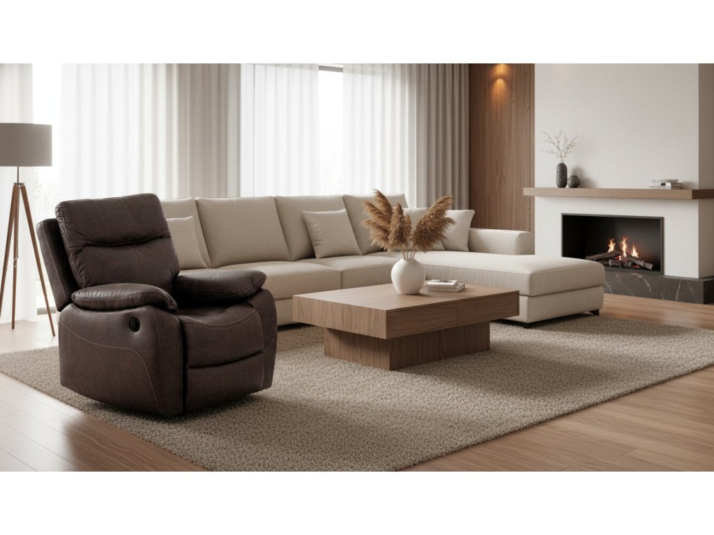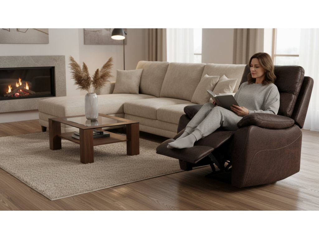 Relaxační TV křeslo SOLARI – elektrické ovládání a bezdrátový komfort