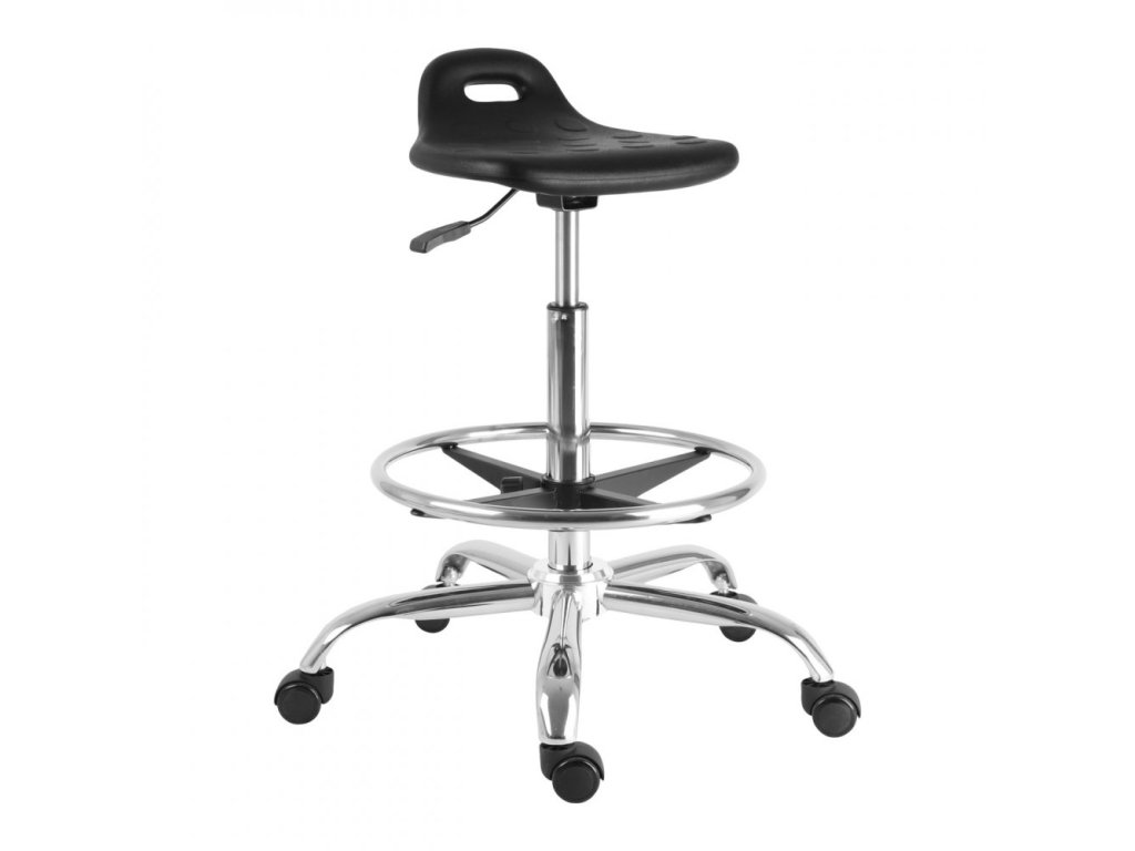 Židle je vybavena výškově nastavitelným sedákem, takže ji lze přizpůsobit různým typům pracovních ploch. Pro práci ve vyšší pozici slouží výškově nastavitelná kruhová opěrka nohou, která zvyšuje pohodlí a stabilitu při sezení. Praktickým prvkem je také integrované madlo na sedáku, díky kterému lze židli rychle a pohodlně přenášet nebo posouvat po pracovišti.