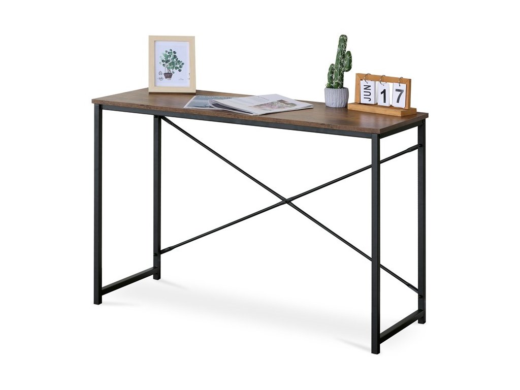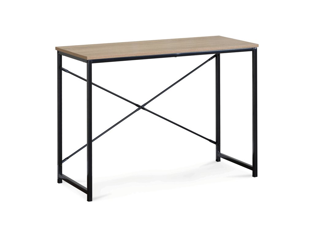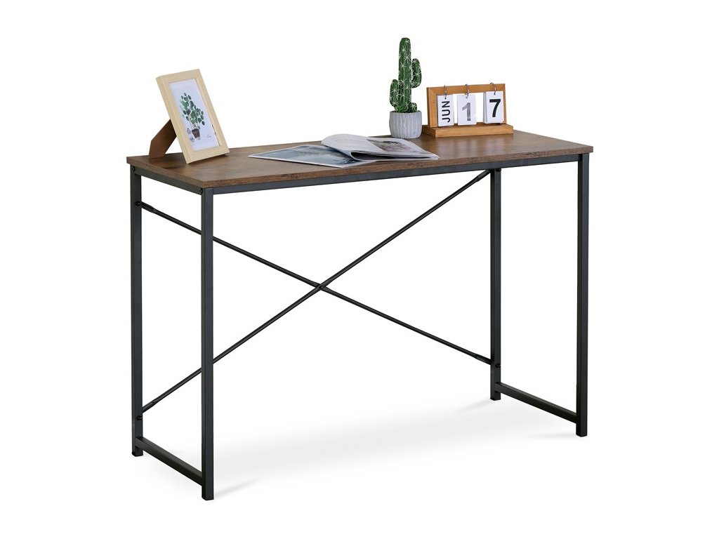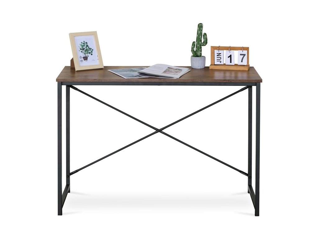 Pracovní stůl PRESTANO - MDF, kov, černá / dekor staré dřevo