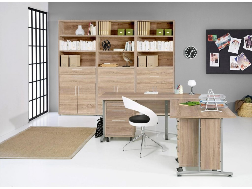 Nadčasová řada Office nabízí nekonečně mnoho úložných řešení pro vaši kancelář, domácí pracovnu nebo studentský pokoj. Knihovny a kancelářské skřínky je možné doplnit zásuvkami (s kovovými pojezdy) a dvířky v různých barvách, což vám umožňuje vytvořit si kancelář přesně podle vašich potřeb a přání. Sortiment této řady vyrobený z odolného a snadno udržovatelného lamima obsahuje také širokou škálu kancelářských stolů, pojízdných zásuvkových kontejnerů a variabilních prvků.