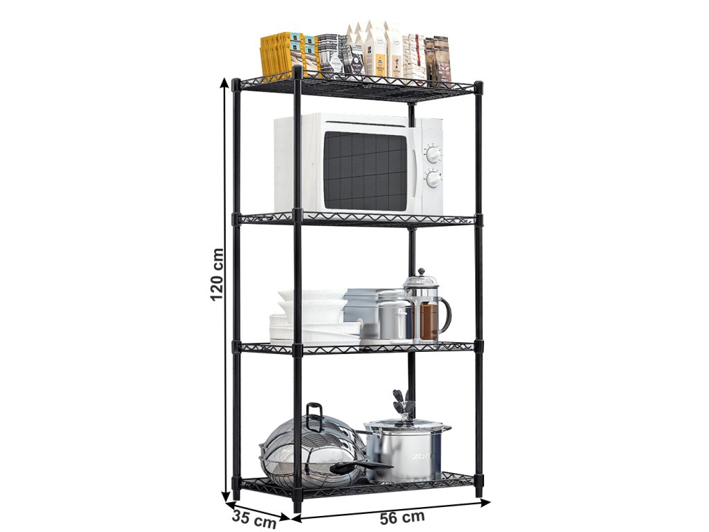 Regál, 4-policový, černá, SUER TYP 1