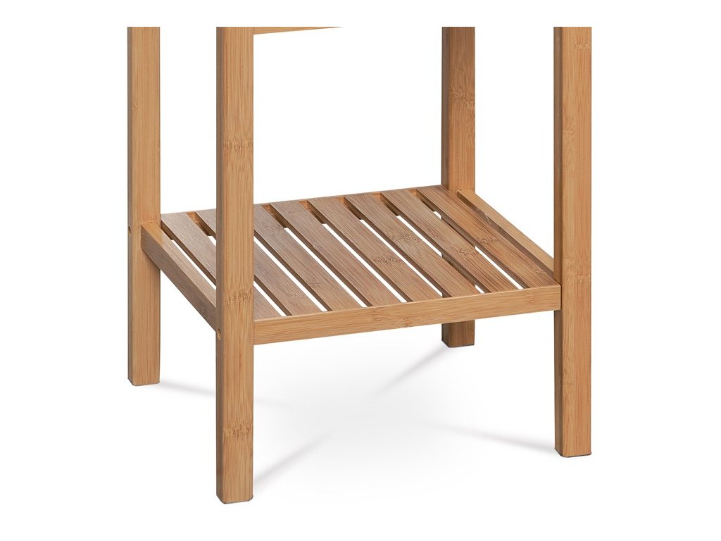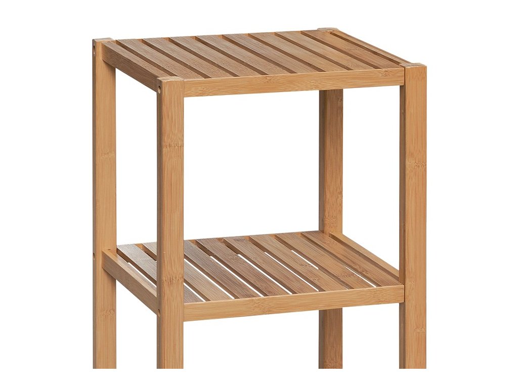Regál FONZIE je praktickým pomocníkem do každé domácnosti. Je vyroben z masivního bambusu v přírodním odstínu, který zajišťuje pevnost a stabilitu celé konstrukce. Tři police s lamelovým provedením nabízejí dostatek prostoru pro uskladnění drobných předmětů, dekorací či ručníků, přičemž každá police unese až 9 kg. Díky otevřenému designu působí regál vzdušně, je snadno přístupný ze všech stran a dobře se udržuje. Jeho přírodní vzhled se hodí do koupelny, předsíně, ložnice i obývacího pokoje, kde oceníte kombinaci funkčnosti a jednoduchého designu.