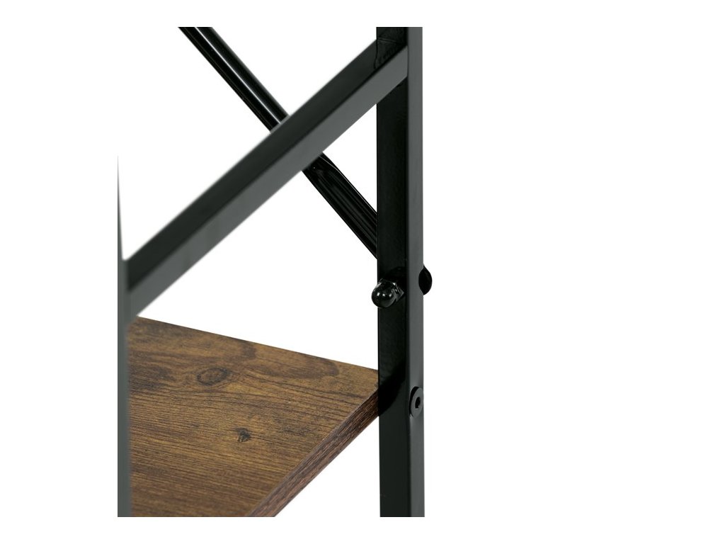 Pro vyšší stabilitu je regál vybaven kovovou výztuhou ve tvaru písmene X na zadní straně. Součástí balení je i sada pro připevnění ke stěně, která zajišťuje bezpečné používání. Díky kompaktním rozměrům se regál hodí nejen do obývacího pokoje, ale také do kanceláře, ložnice nebo předsíně.
