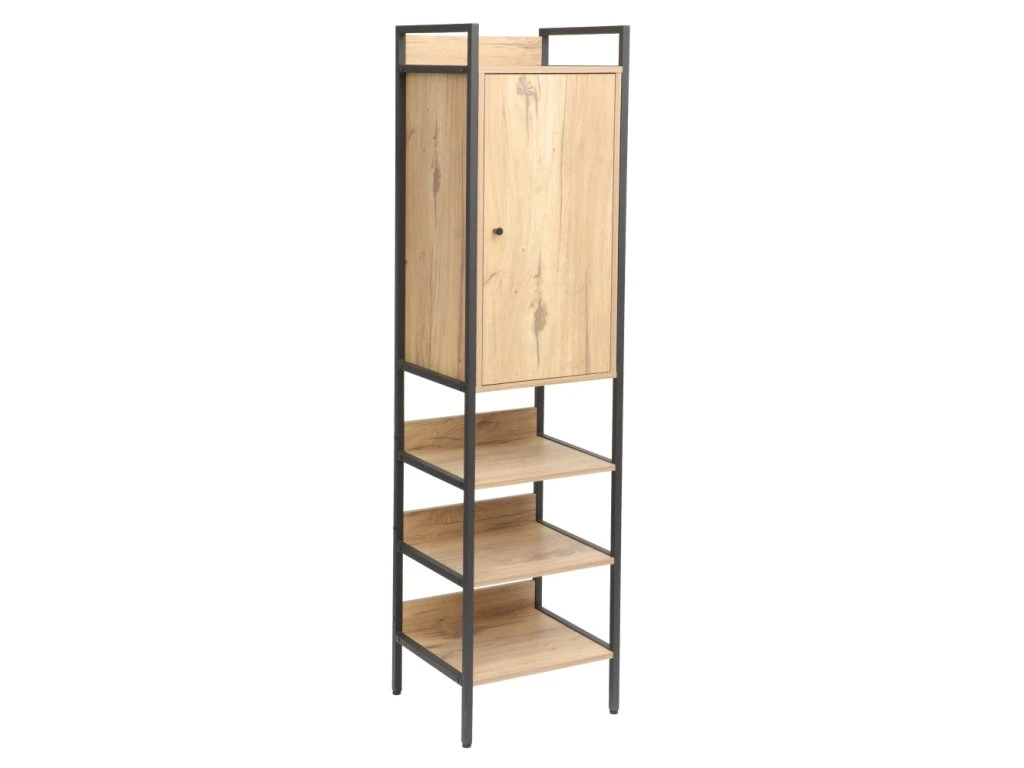 Regál se skříňkou, dub/černá, LORVA