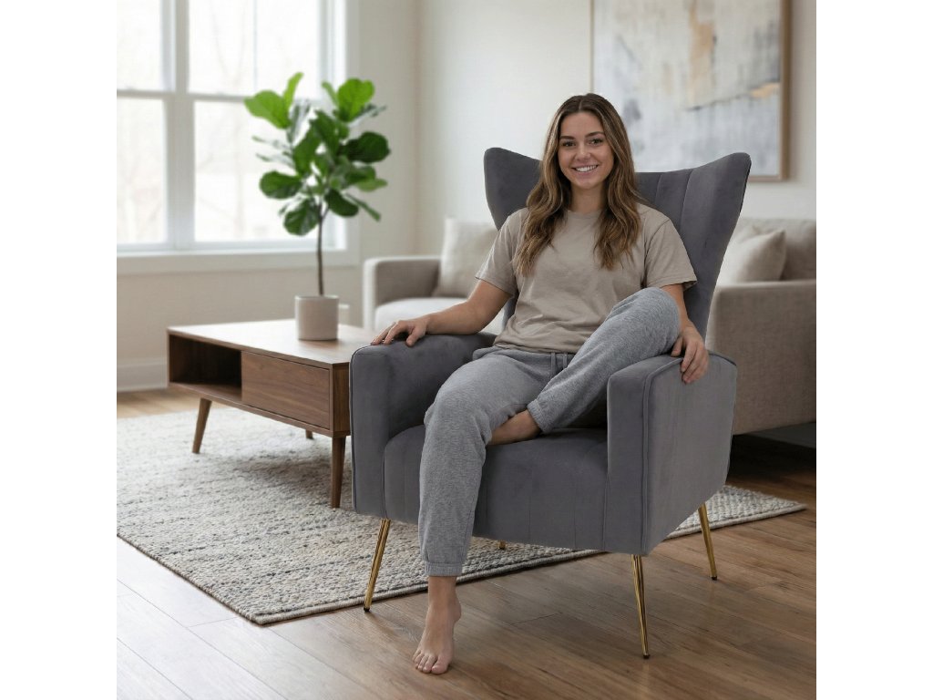 Relaxační křeslo, šedá Velvet látka, BARET