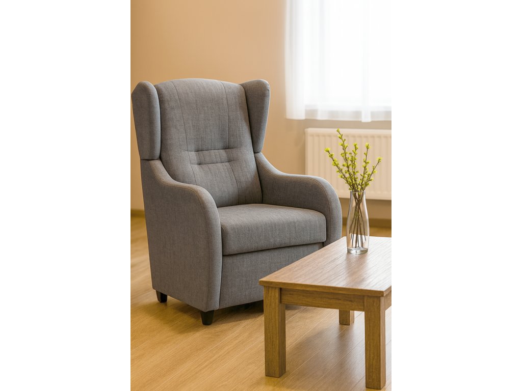 Pokud rádi relaxujete při sledování televize nebo s knihou, tak je pro Vás křeslo René tím pravým společníkem. Díky vysoké opěrce se pohodlně opřete a Vaše záda nebudou trpět. Při sledování televize si můžete ruce volně položit na loketní opěrky, Vaše tělo se uvolní, začnete relaxovat a Vy se budete cítit pohodově. Křeslo je očalouněno kvalitní potahovou látkou, nožky jsou ze dřeva. Z naší široké nabídky barev a vzorů si jistě vyberete to nejvhodnější křeslo, které se ve vašem pokoji bude nejlépe vyjímat.