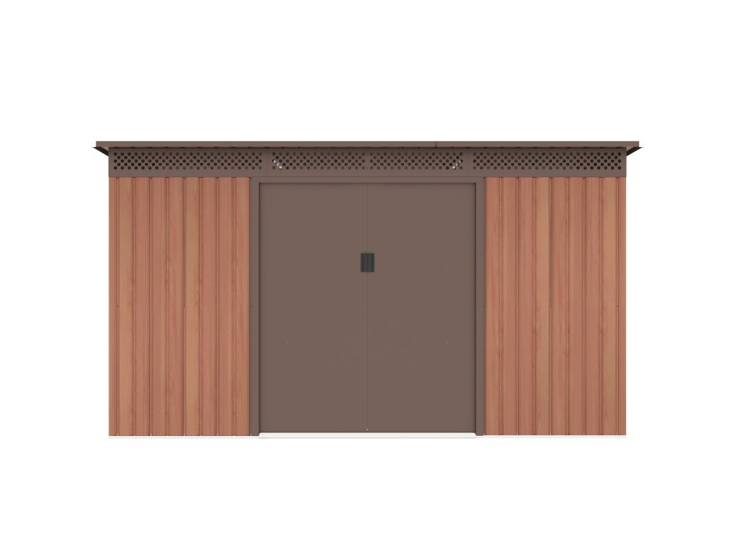 Zahradní domek GRAH 700 má dvoukřídlé dveře o celkové šířce 138 cm. Vstup do domku je tak opravdu pohodlný, i když nesete nebo vynášíte objemnější věc.