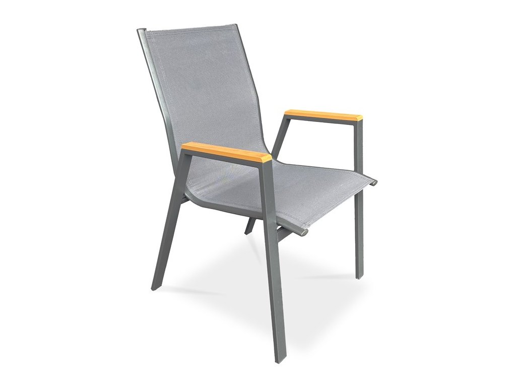 Robustní kovová konstrukce s práškovou povrchovou úpravou je odolná vůči povětrnostním vlivům a slibuje dlouhou životnost. Polywoodové područky dodávají přírodní prvek, který krásně ladí s moderním minimalistickým vzhledem židle. Velkou výhodou je, že židle se dodává kompletně smontovaná – ihned připravena k použití.