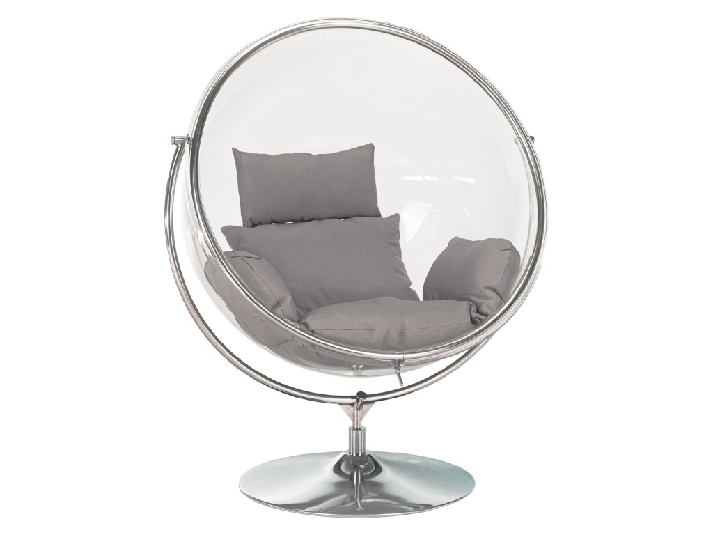 Závesné kreslo so stojanom, transparentná/strieborná/sivá, BUBBLE NEW TYP 2